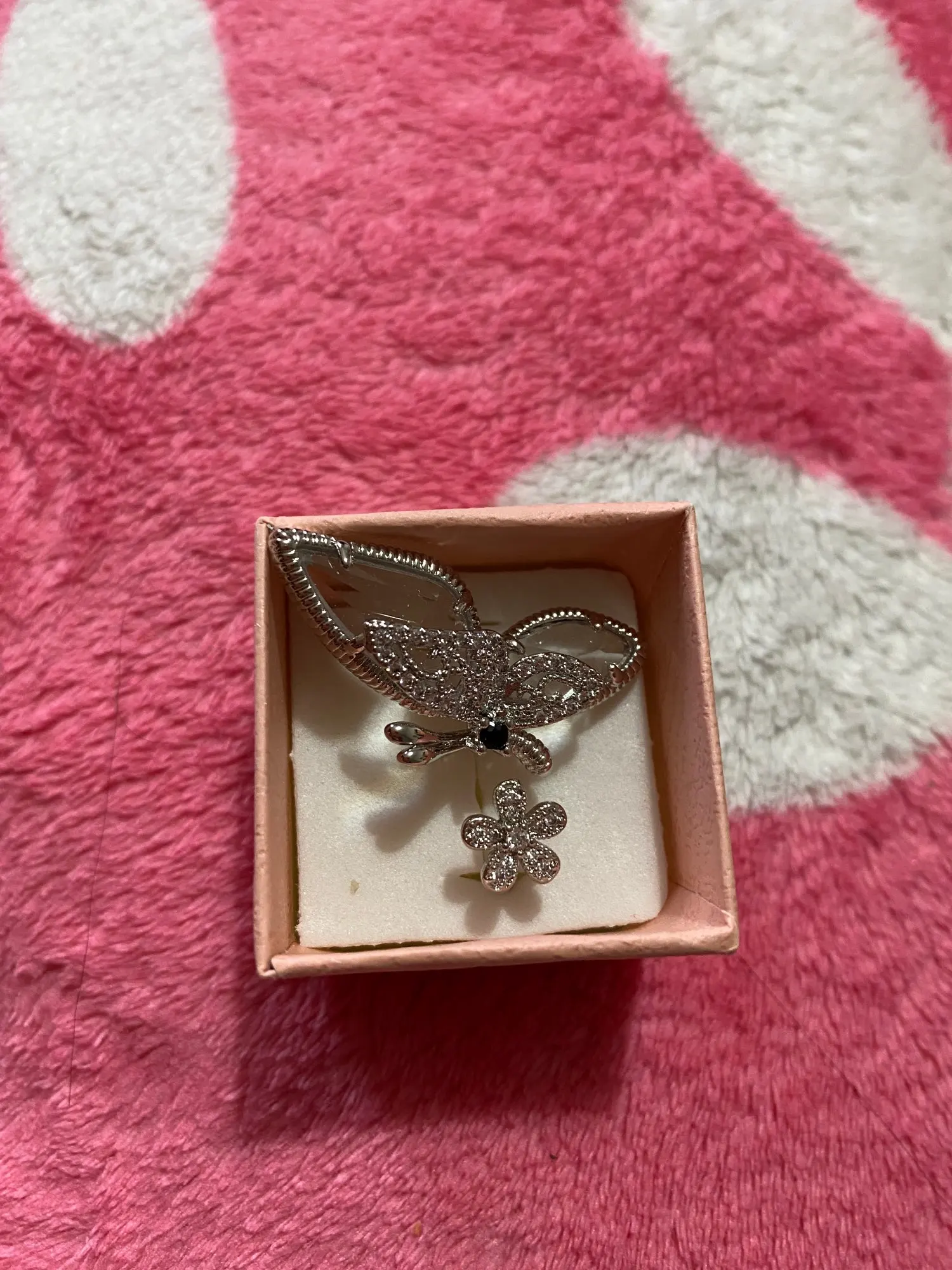 Кольцо женское, с цветком и бабочкой, регулируемое, тенденции в ювелирных изделиях