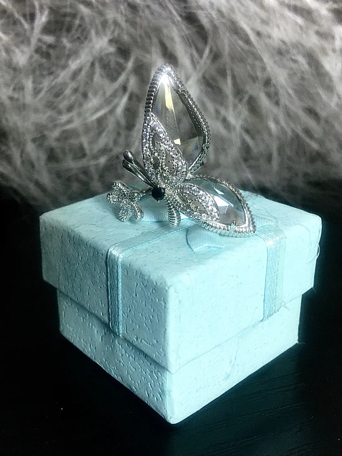 отсутствие большого камня на крылышке,даже в коробке не было,тупо положили брак. одна звезда за то что вернули деньги быстро
