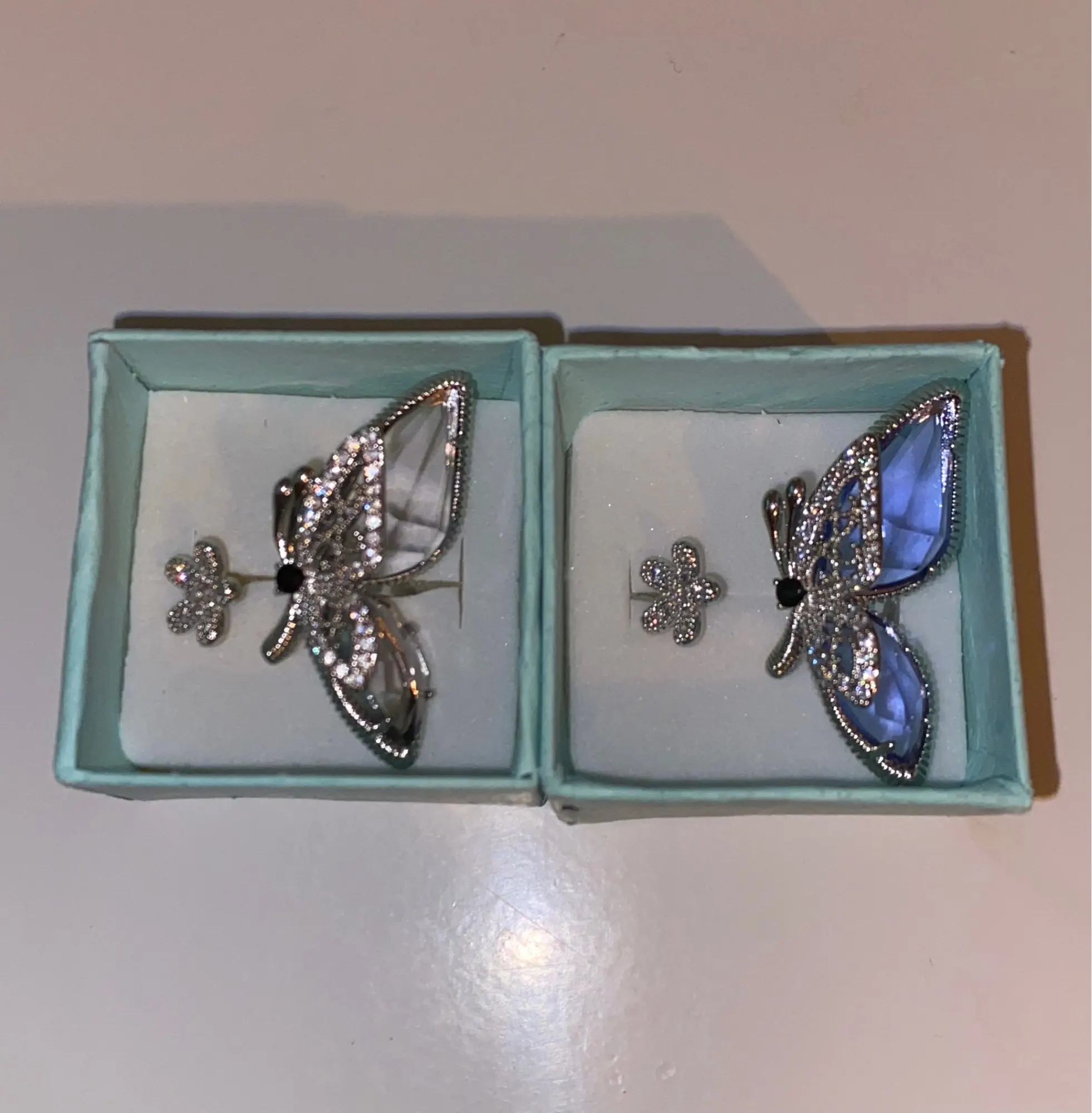 Доставка в Украину чуть больше месяца. Отслеживалось. В жизни еще лучше, чем на фото. Нежное, детализированное, смотрится дорого, можно на подарок. Пришло с коробочкой, коробочка милая, но хилая. Колечками очень довольна!