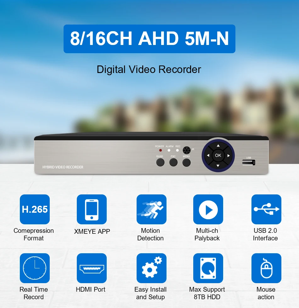 Видеорегистратор Smar 8CH 16CH 5M-N 5 в 1 Гибридный для AHD-камеры аналоговая камера 5MP IP-камера P2P NVR система видеонаблюдения H.265 Новинка