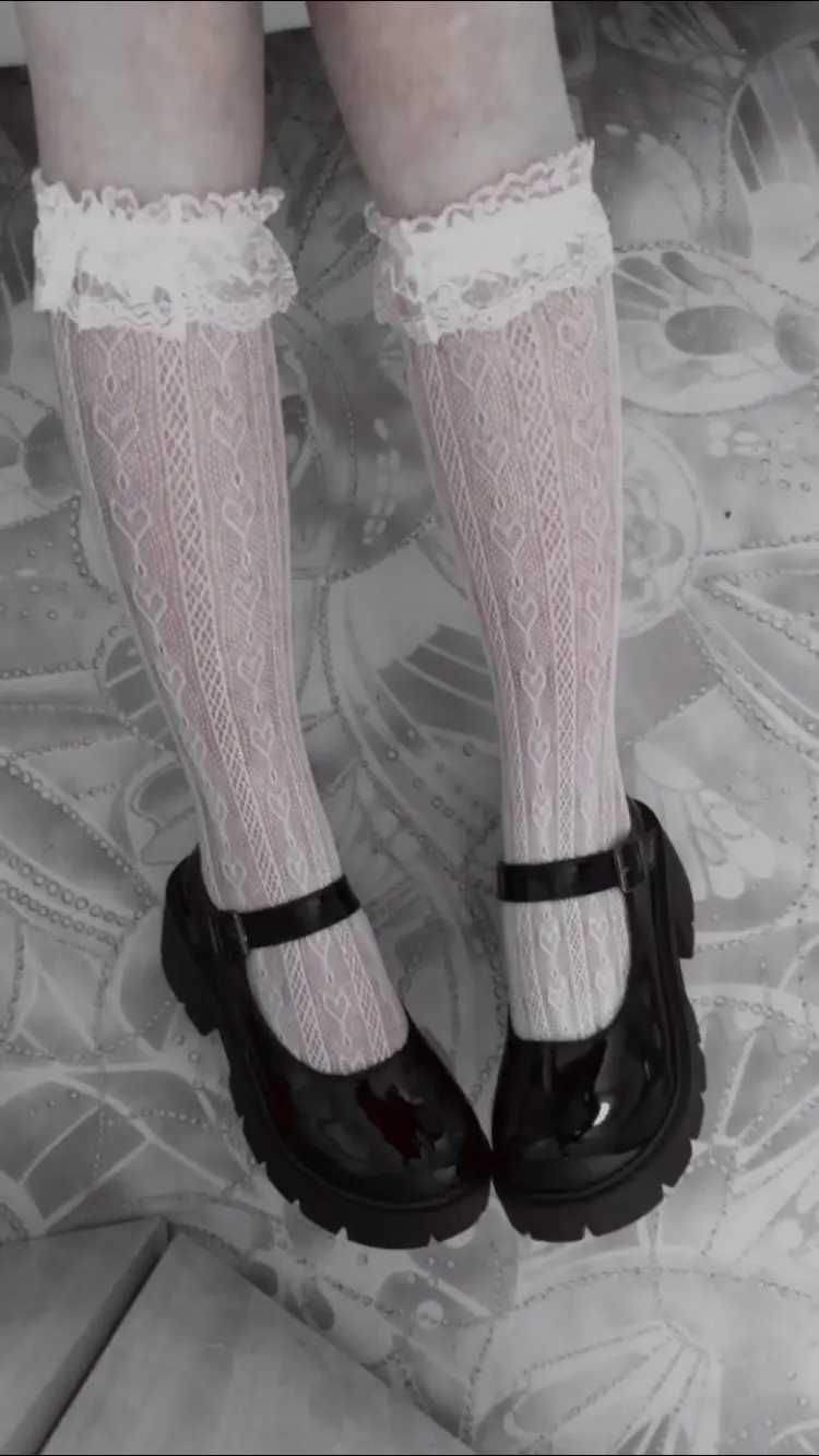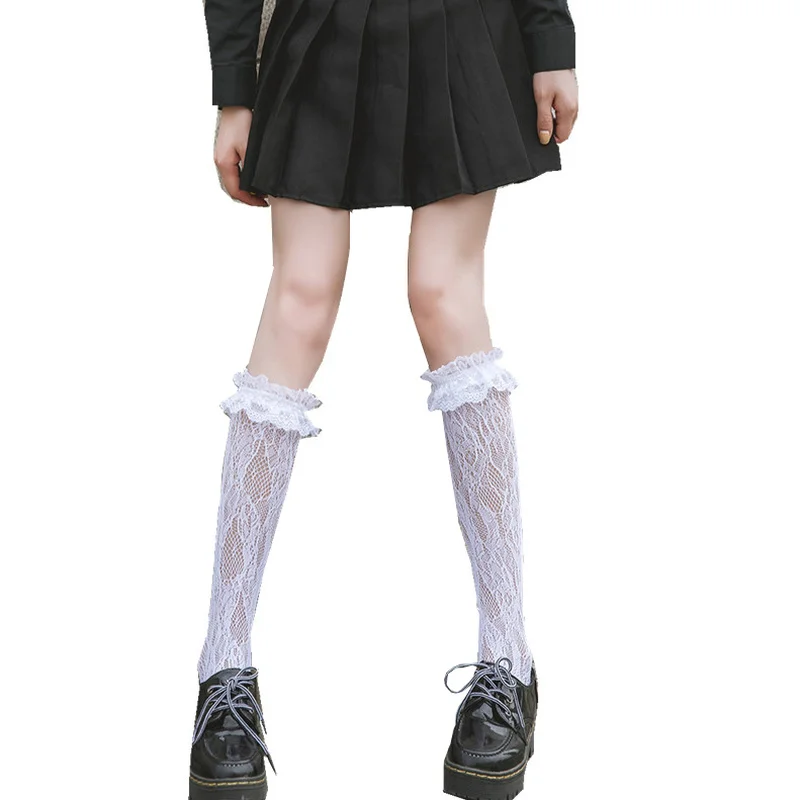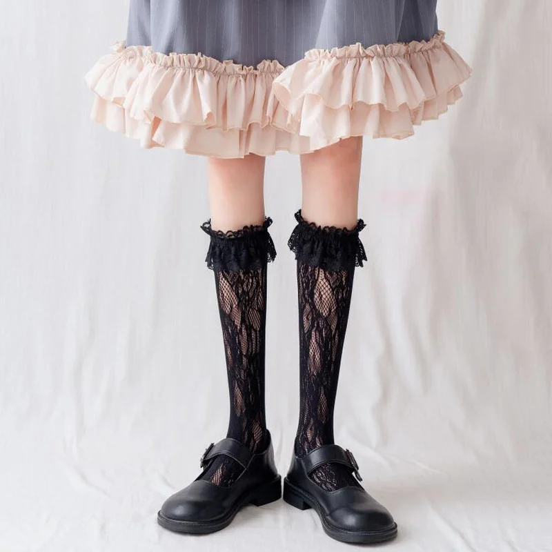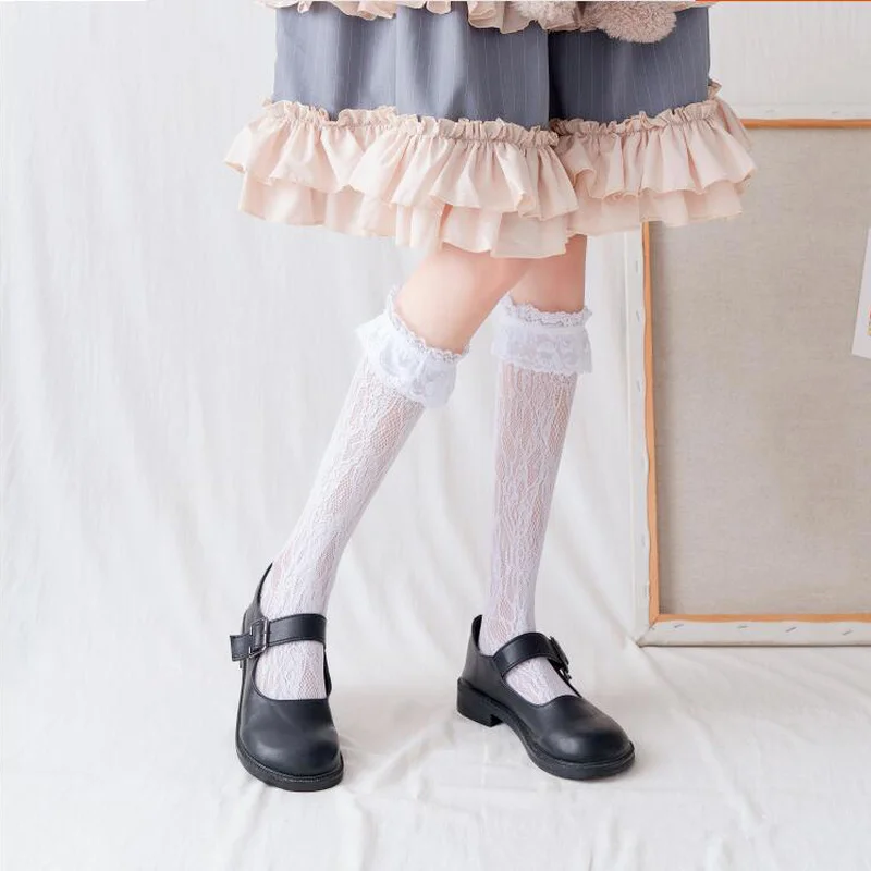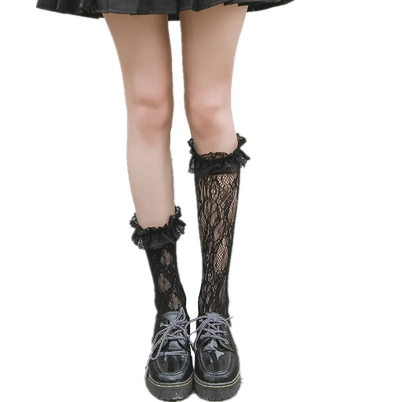 Носки Lolita милые черные белые кружевные ажурные носки ворсовые Гольфы милые женские костюмы для косплея аксессуары