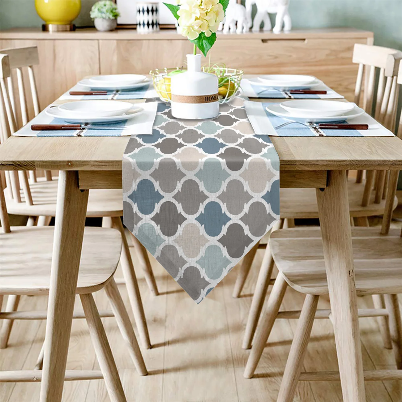 Настольная дорожка s, современный серый индиго марокканский узор, Настольная дорожка, рождественские украшения для домашнего стола