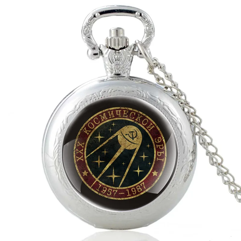 Уникальные винтажные кварцевые карманные часы CCCP с символом космического агента, подвеска на ожерелье, часы, подарки
