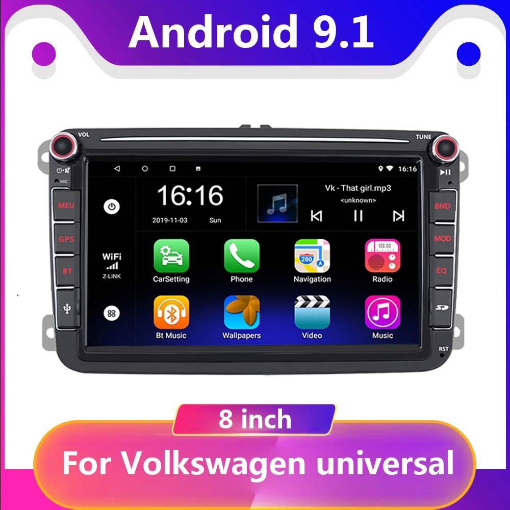 Автомагнитола 8 дюймов, 2 Din, Android 9,1, для VW, Volkswagen, Golf, Polo, Passat b7, b6, SEAT, leon, Skoda
