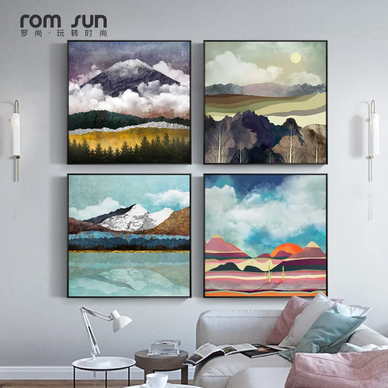Абстрактная Красочная картина закат пейзаж холст постеры печать сов...