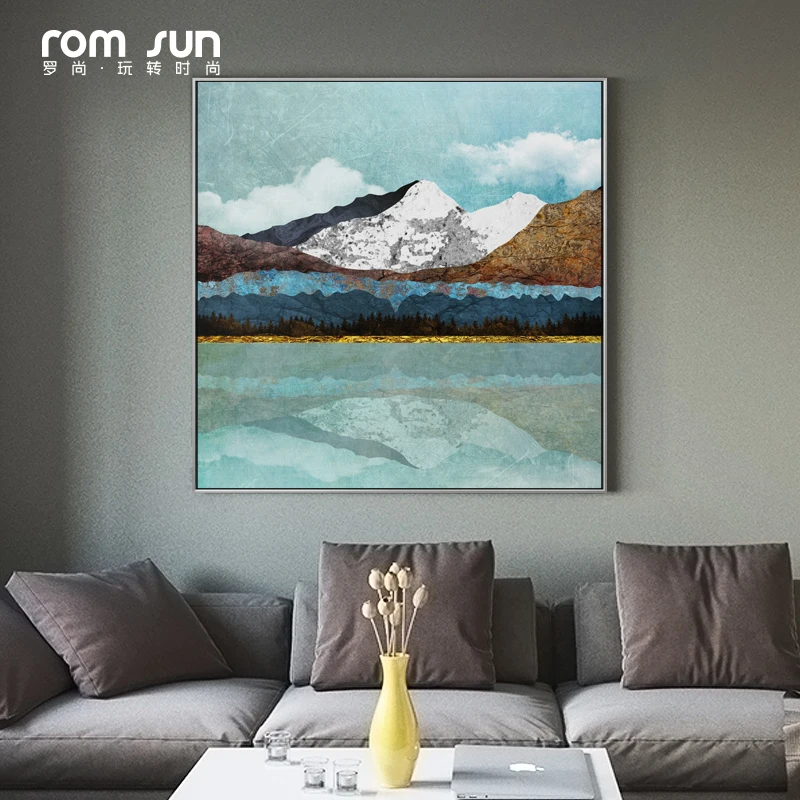 Абстрактный синий белый пейзаж Холст Плакаты печать золотые настенн...