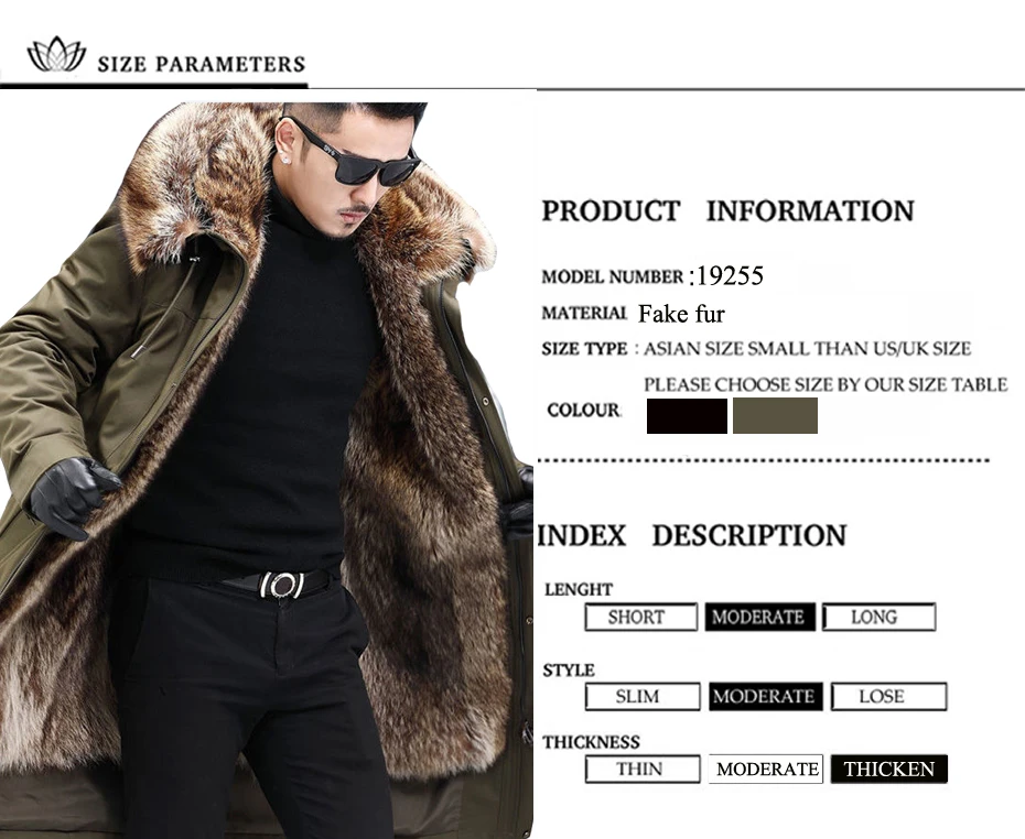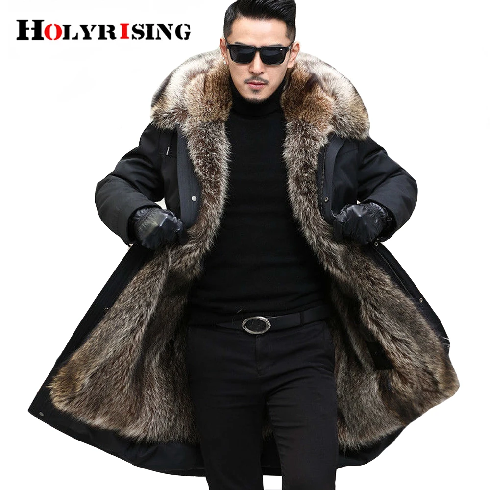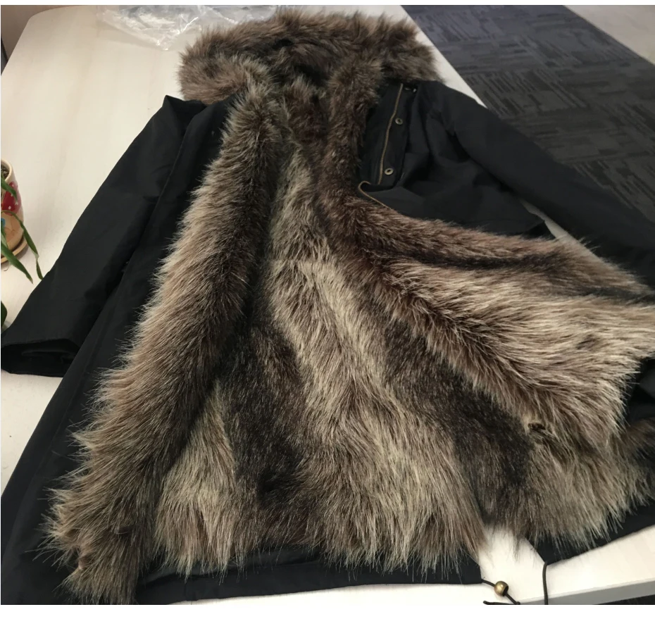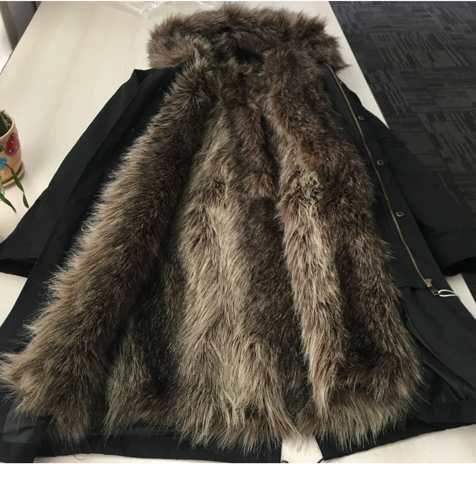Пальто мужское зимнее длинное с большим меховым воротником, искусственный мех енота