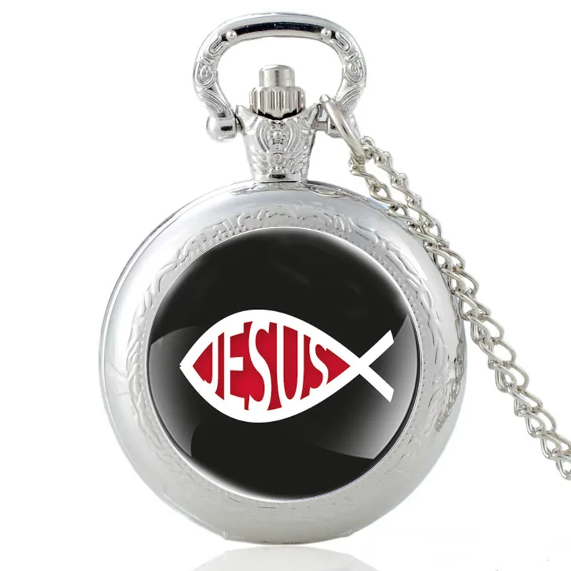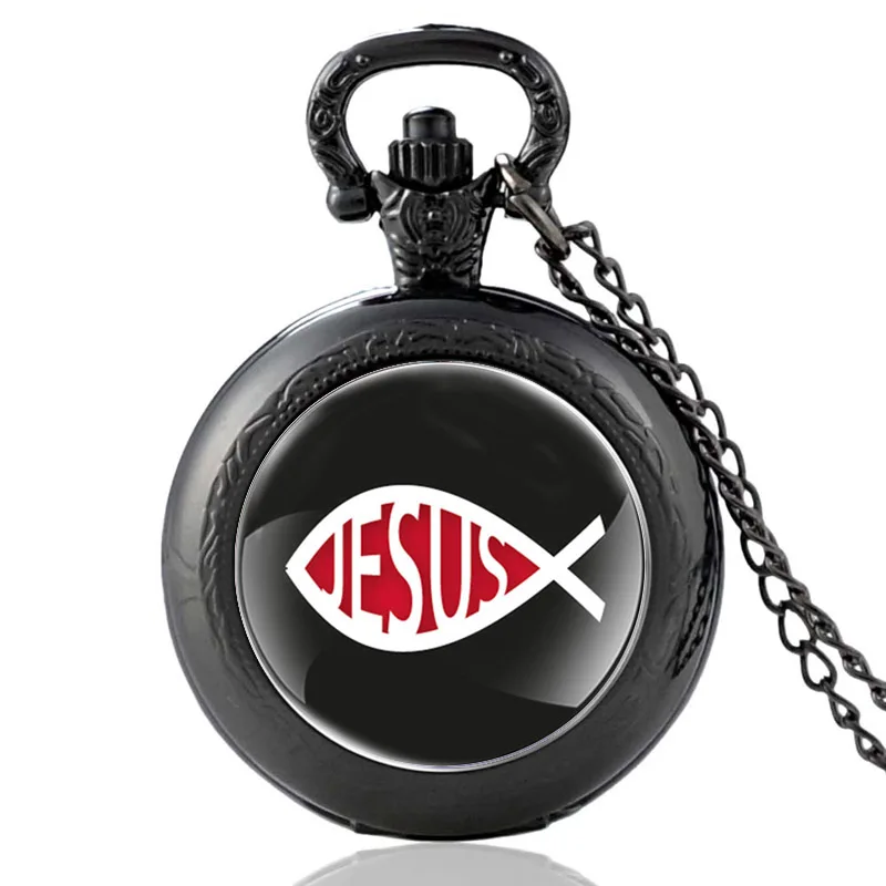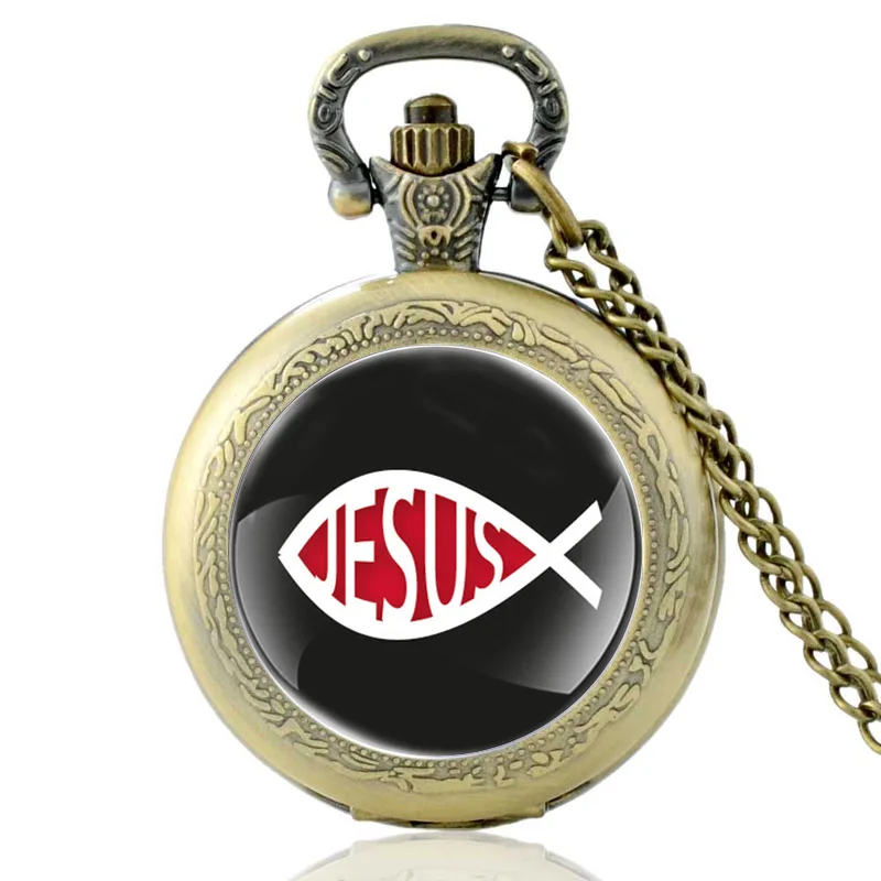 Новое поступление, бронзовые винтажные кварцевые карманные часы с изображением Иисуса рыбы для мужчин и женщин, уникальная подвеска-ожерелье, часы, подарки