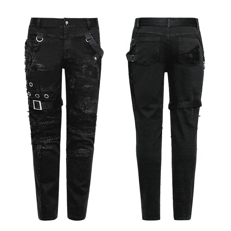 Мужские брюки-карандаш PUNKRAVE в стиле панк, уличная одежда, эластичная ткань, сетка