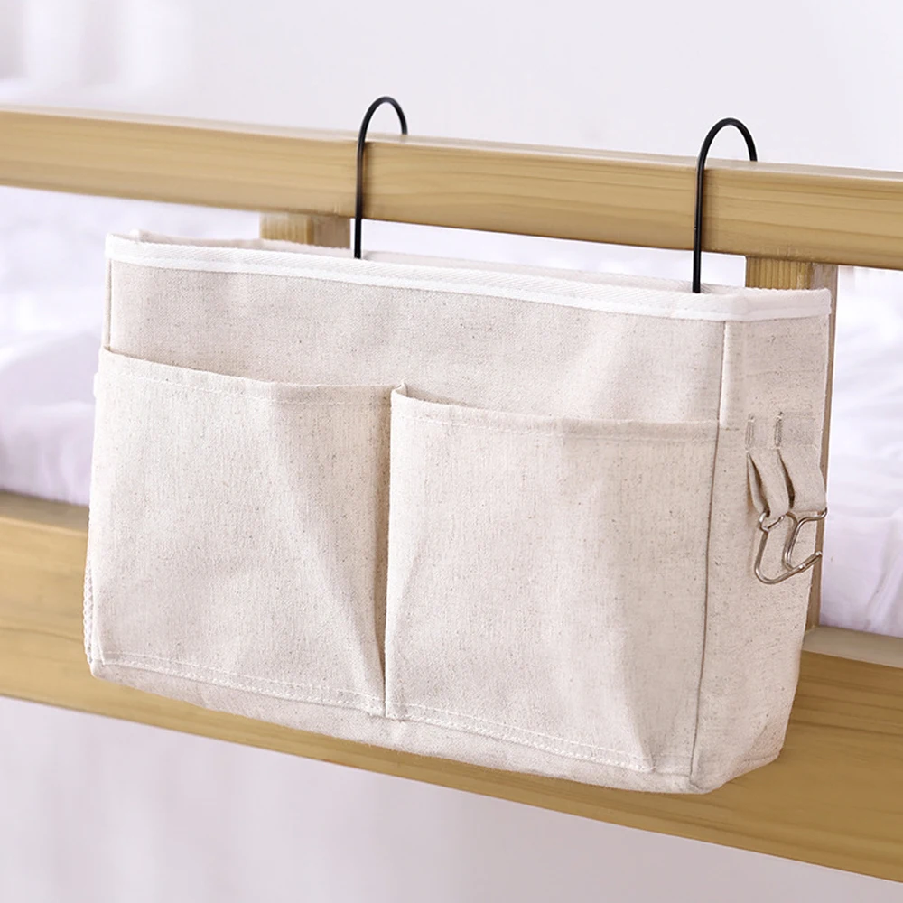 Холщовая подвесная сумка для хранения прикроватного столика, карман...