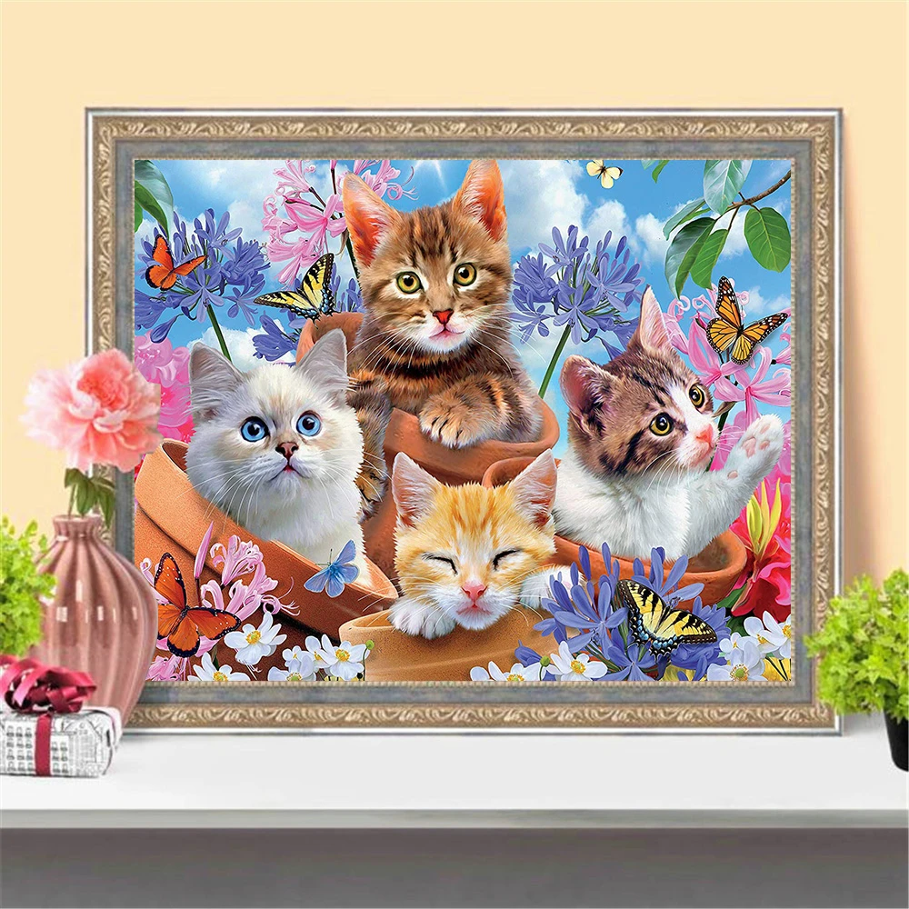 Huacan алмазная вышивка кошка мозаика животные картины из страз картины цветы декоративные наклейки на стену
