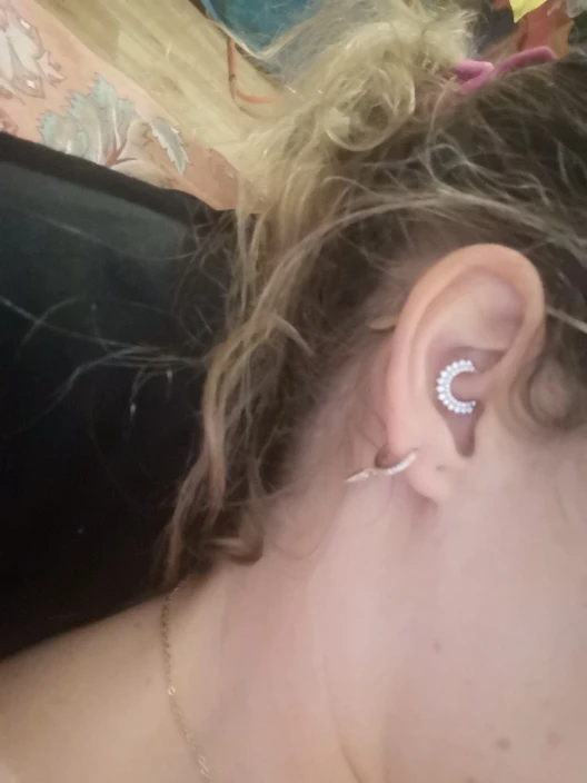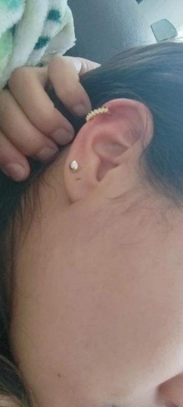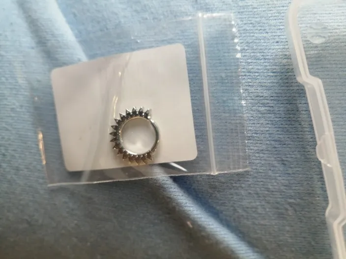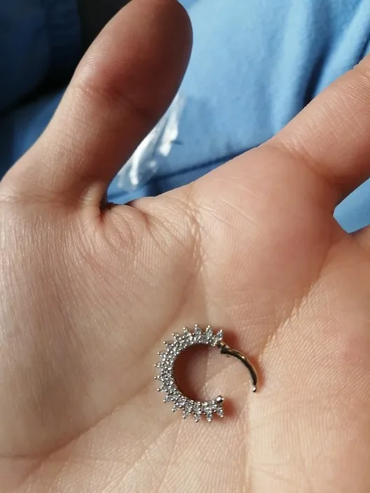 Пирсинг супер красивый. Но я не могу поставить его, потому что стержень очень толстый и не проходит через мои отверстия... Противно!