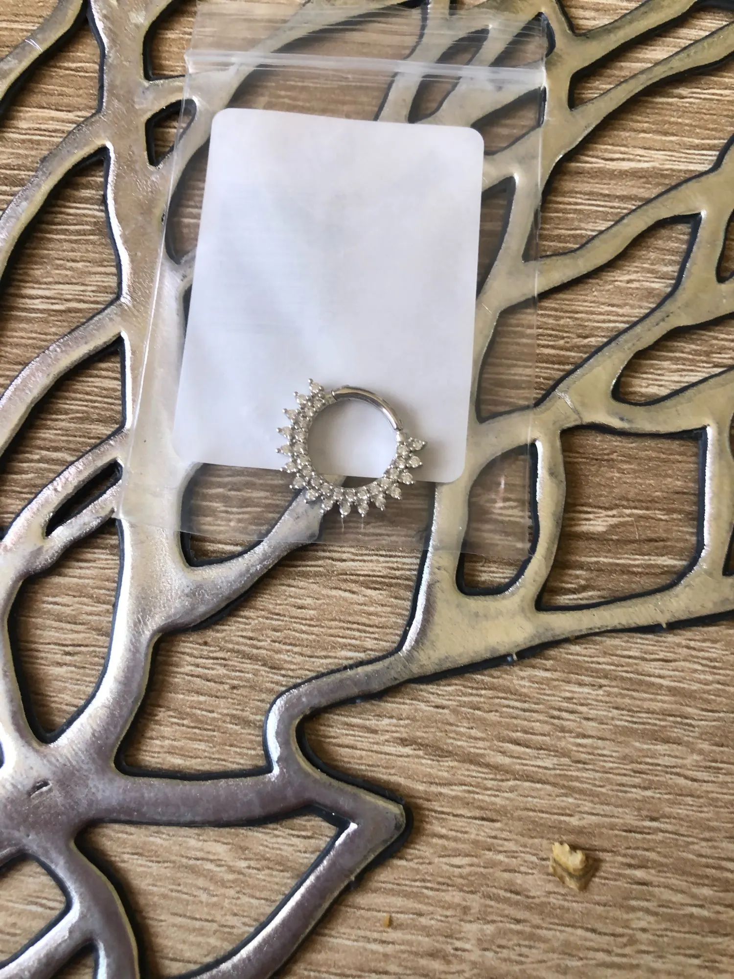 Безумно довольна,что товар пришёл)причём в течении 17дней до МСК. Кликер подошёл тютелька в тютельку по размеру. Он очень аккуратный,качественный,камни на месте,смотрится интересно.Проба стоит 925-посмотрю как в носке будет ли металл «темнеть». Параметры кликера см.фото.Очень было важно,чтобы длина ножки/застежки прошла и застегнулась.У меня очень широкий хрящ прокола Дэйс’поэтому напряглась:но сел как влитой)единственный момент-ножка с натолщением пришла еле пролезла в прокол.Длина ножки’7-8mm.Защёлкивается без труда/В целом милое украшение’мне в серебре просто пушкаБОМБА эффект визуально⭐️⭐️⭐️⭐️⭐️продавцу!