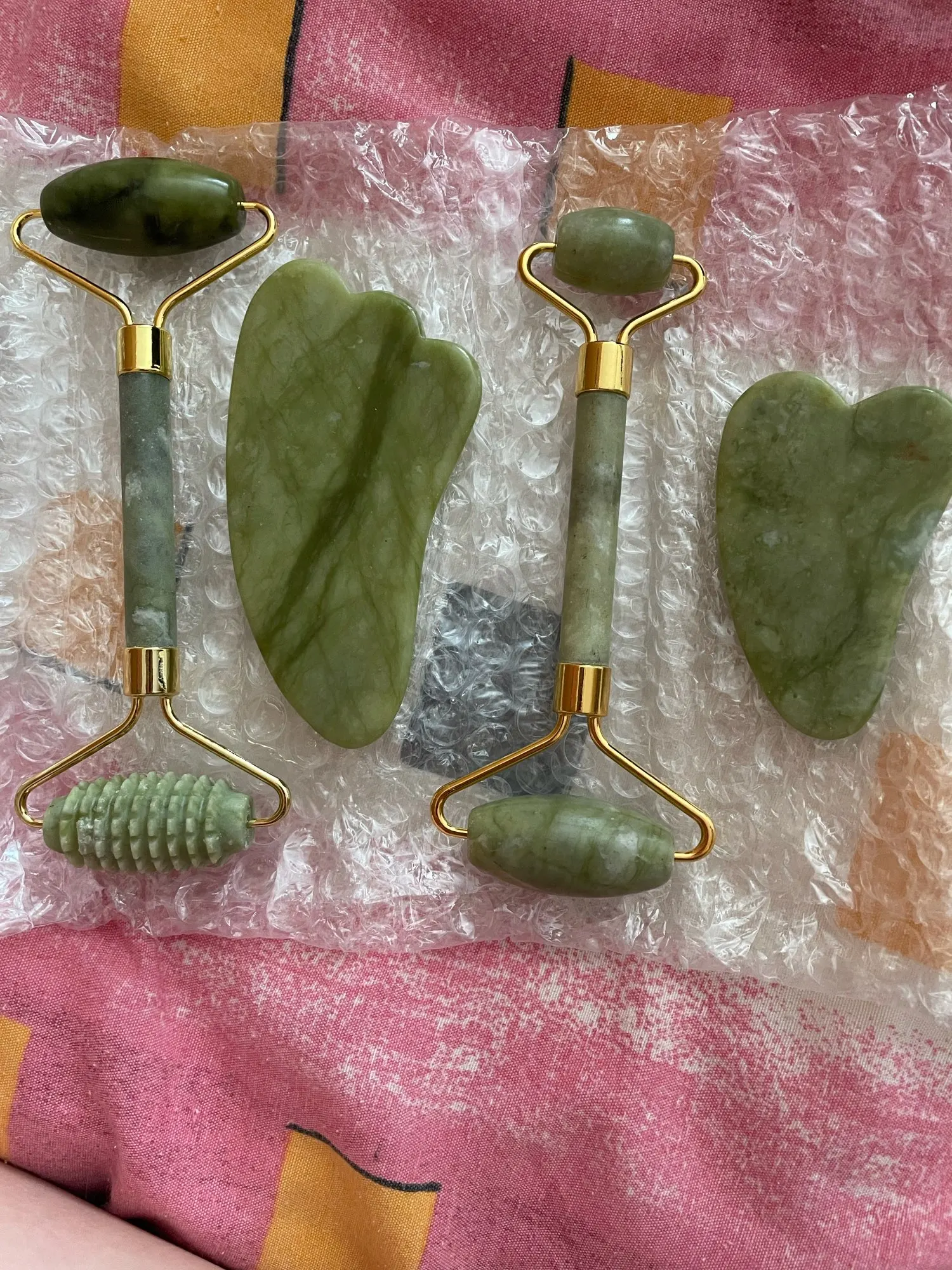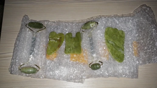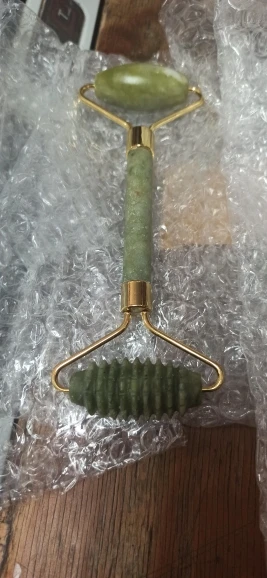 Tout est arrivé rapidement, et en bon état (un peu cassé pour le roller 'dentelé' mais rien de grave, cela ne blesse pas lors de l'utilisation). La pierre semble naturelle, et l'effet est vraiment très agréable lors de l'utilisation. Je suis très contente de l'ensemble et je recommande pour ceux qui hésitent à acheter.