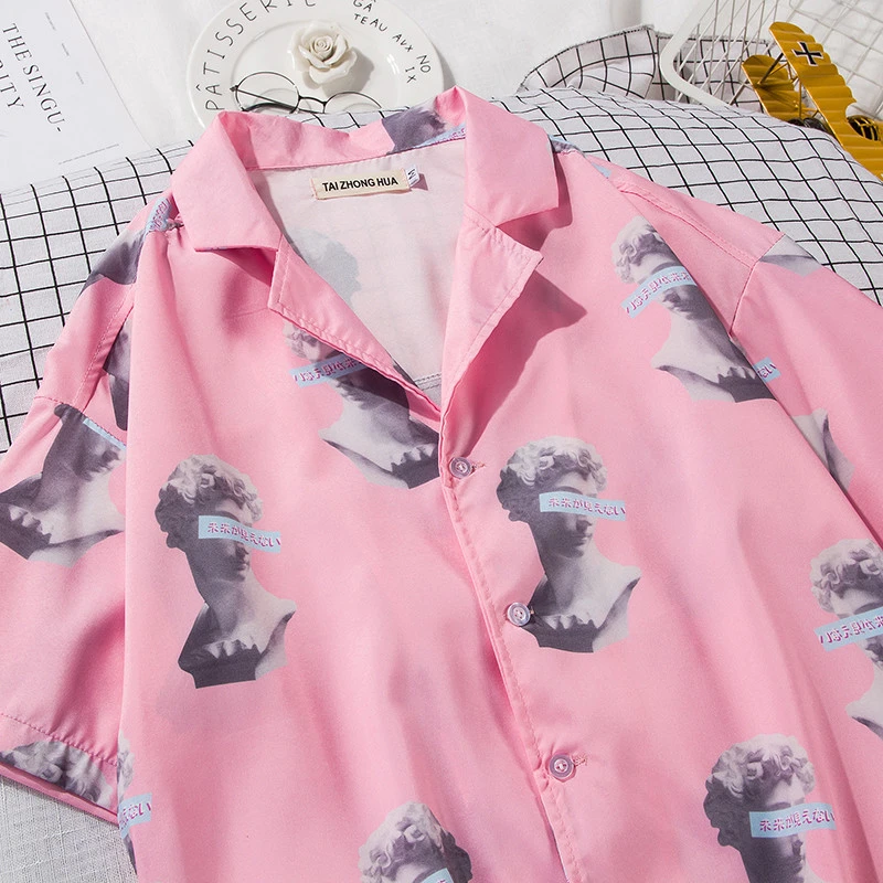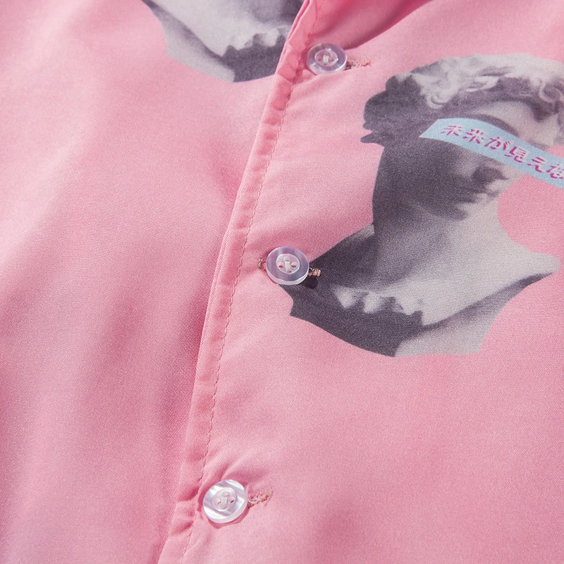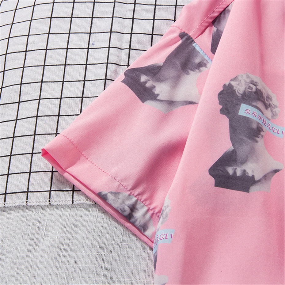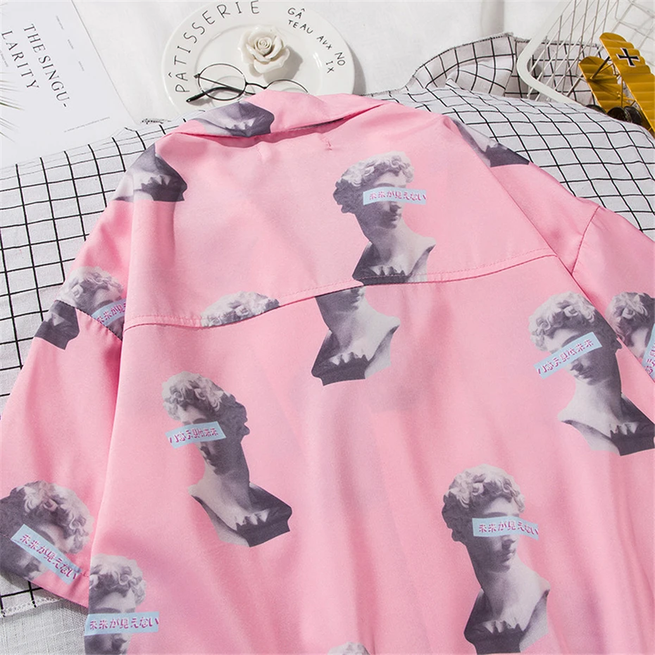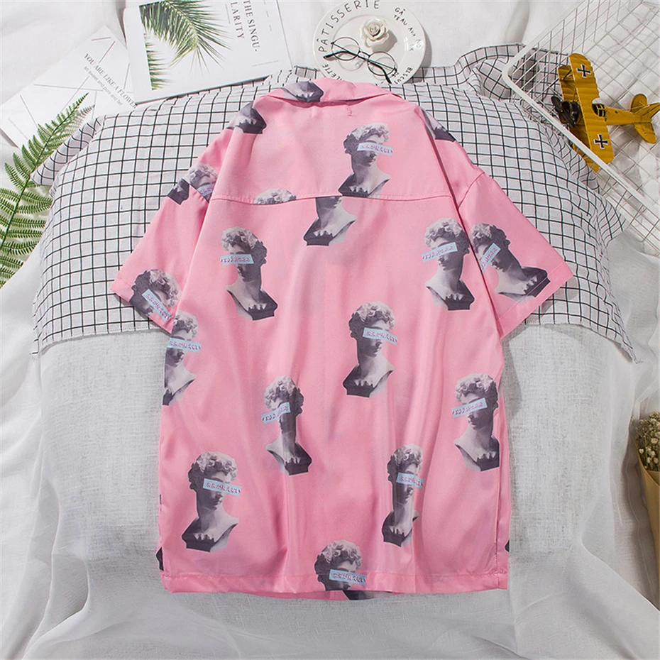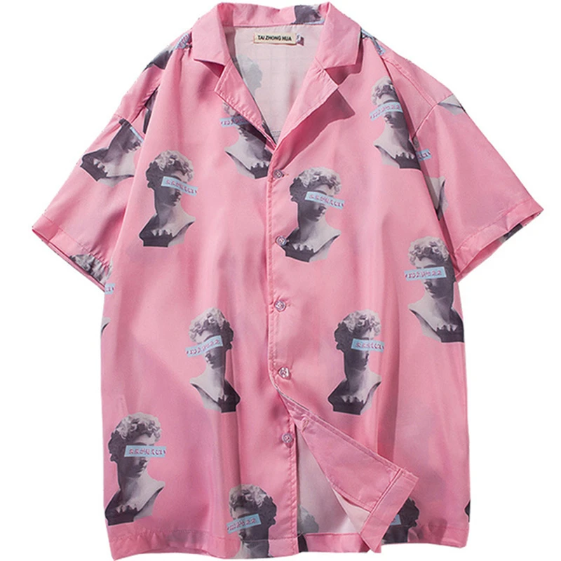 Гавайская рубашка розовая хип-хоп Уличная одежда мужская Микеланджело статуя Давида Харадзюку Летняя Пляжная рубашка гавайская тонкая HH122