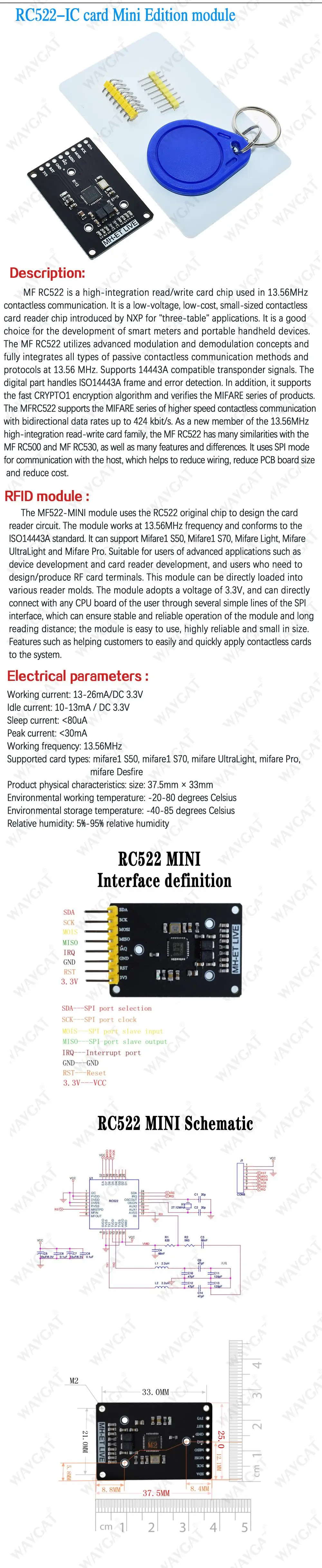 Модуль RFID RC522 MFRC-522 наборы RDM6300 S50 13,56 МГц 125 кГц 6 см с ярлыками, запись и чтение с интерфейсом SPI для arduino uno 2560