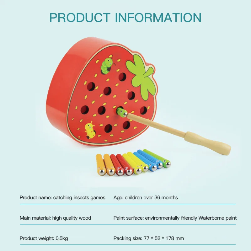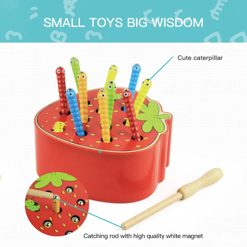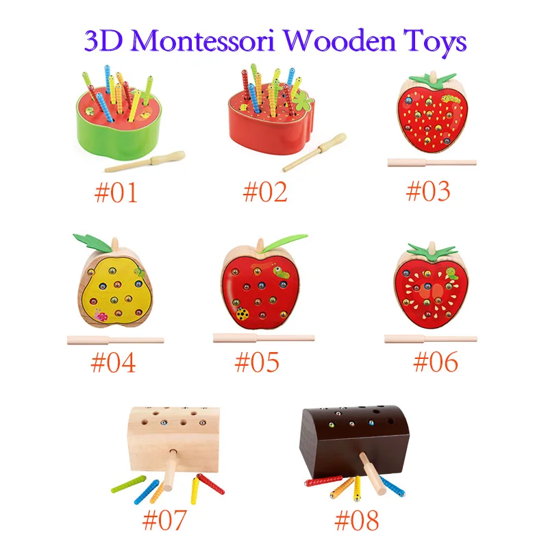 Деревянные игрушки Монтессори 3D, насекомые, червь, игра, Магнитная рыбалка, игры Монтессори, магнитные захваты, гусеница для детей, подарок на Рождество