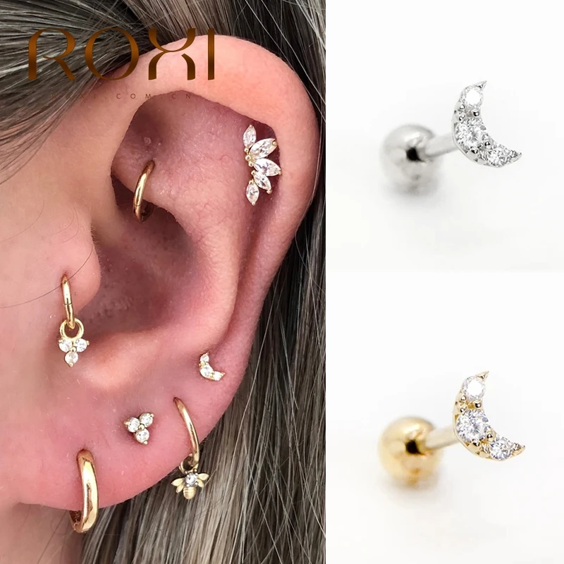 Женские серьги-гвоздики ROXI с маленькой короной, луной, звездой, молнией, созвездиями