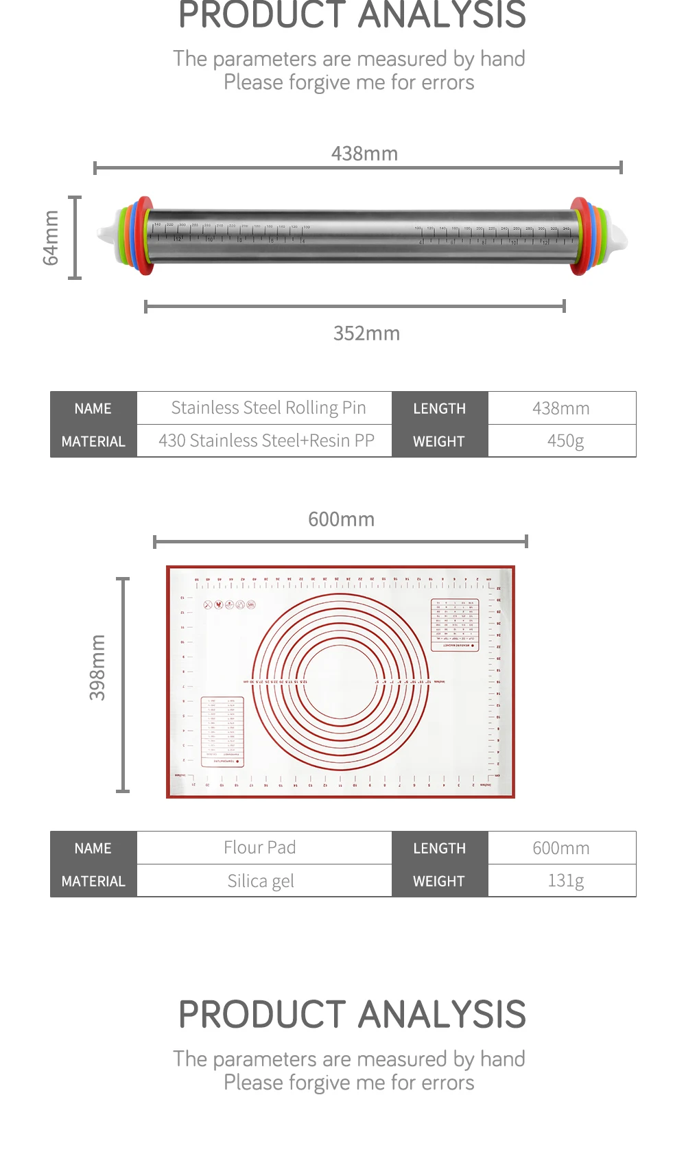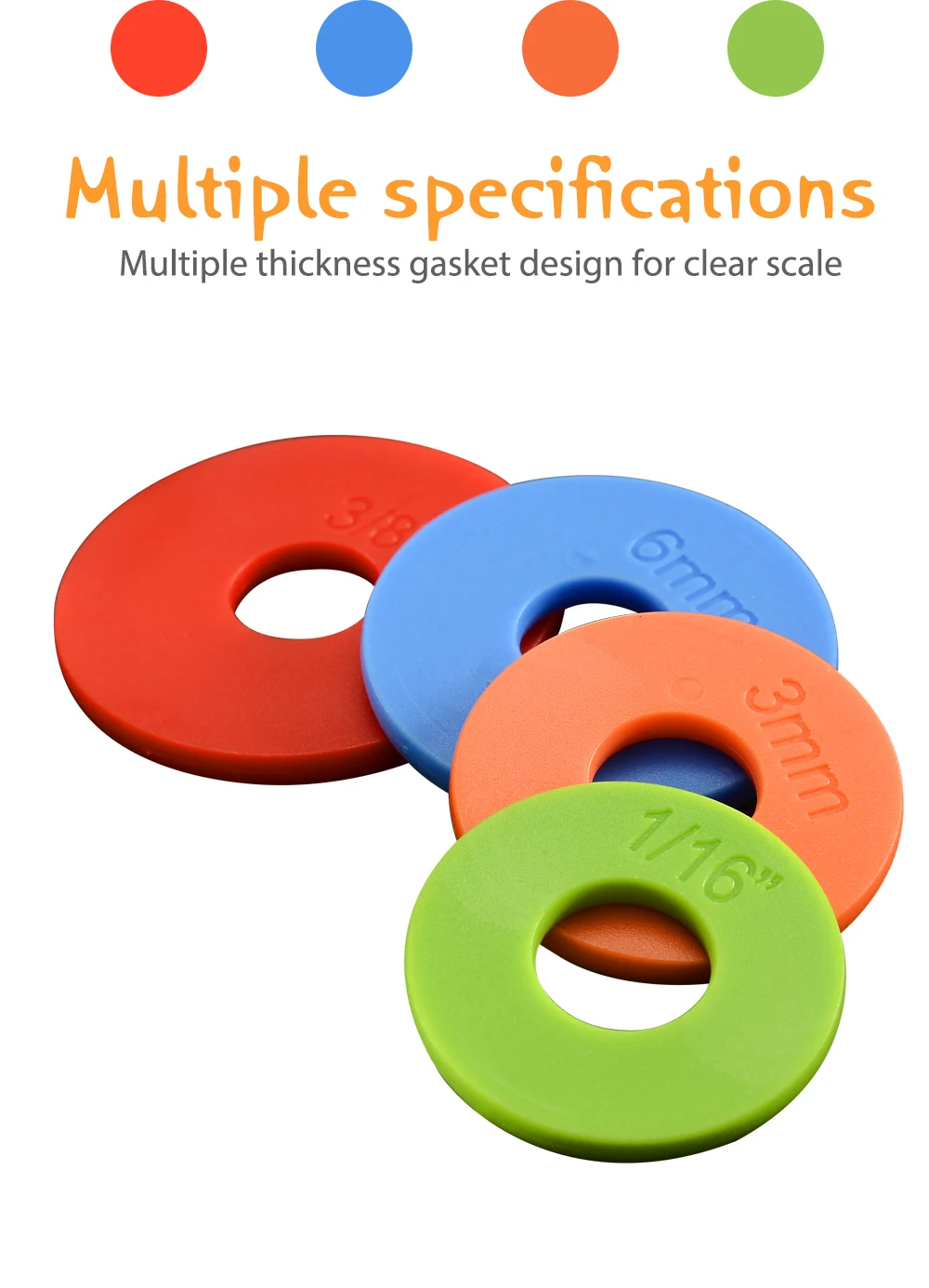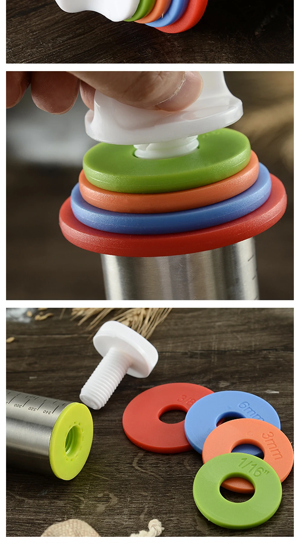 2. Есть четыре набора регулируемых дисков 2 мм/4 мм/6 мм/10 мм, в то время как измерительная маркировка также печатается на штифте, что позволяет вам размер теста для выпечки совершенства.
