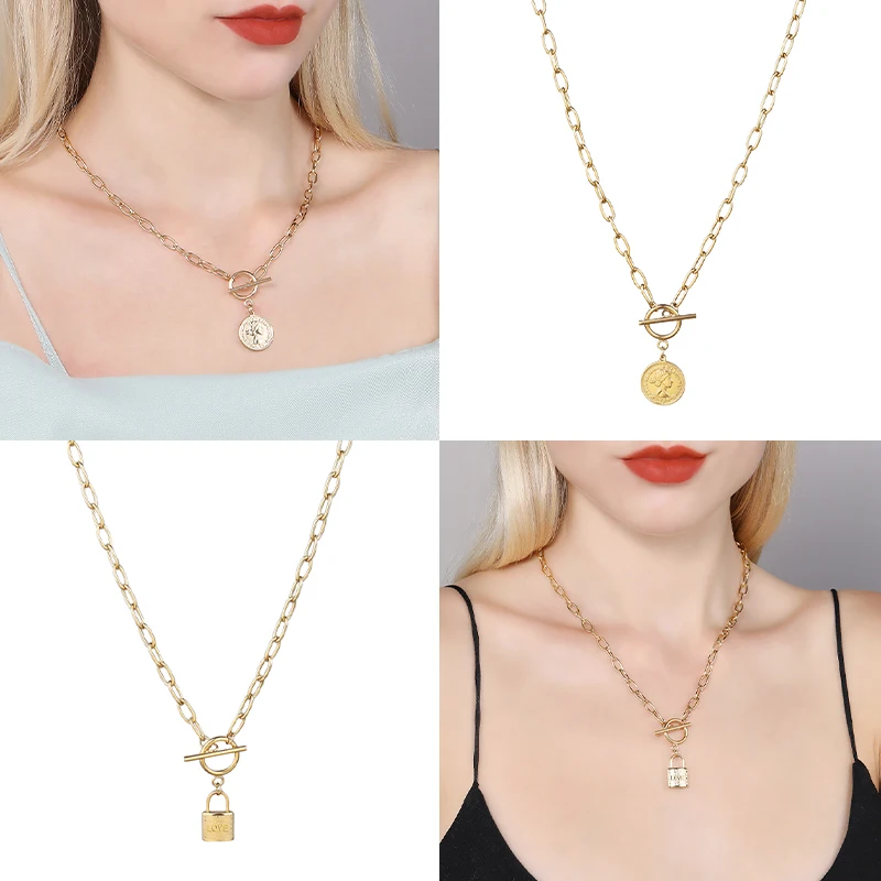 Модное женское ожерелье из нержавеющей стали для женщин, винтажные ...