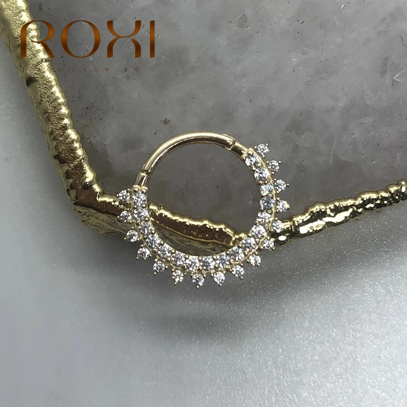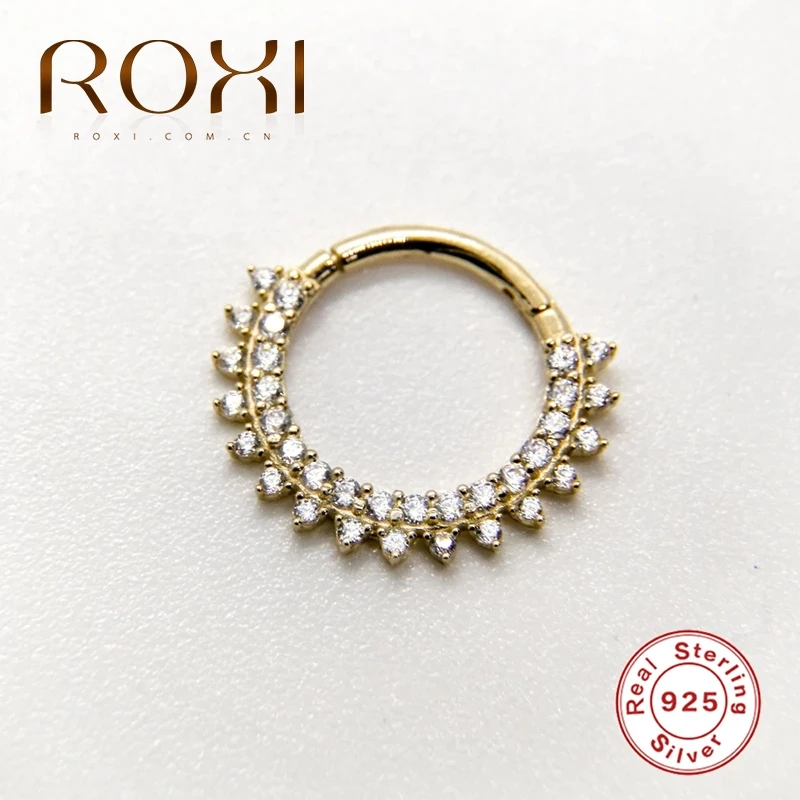 Женские серьги-кольца с цирконом, серебро 925 пробы