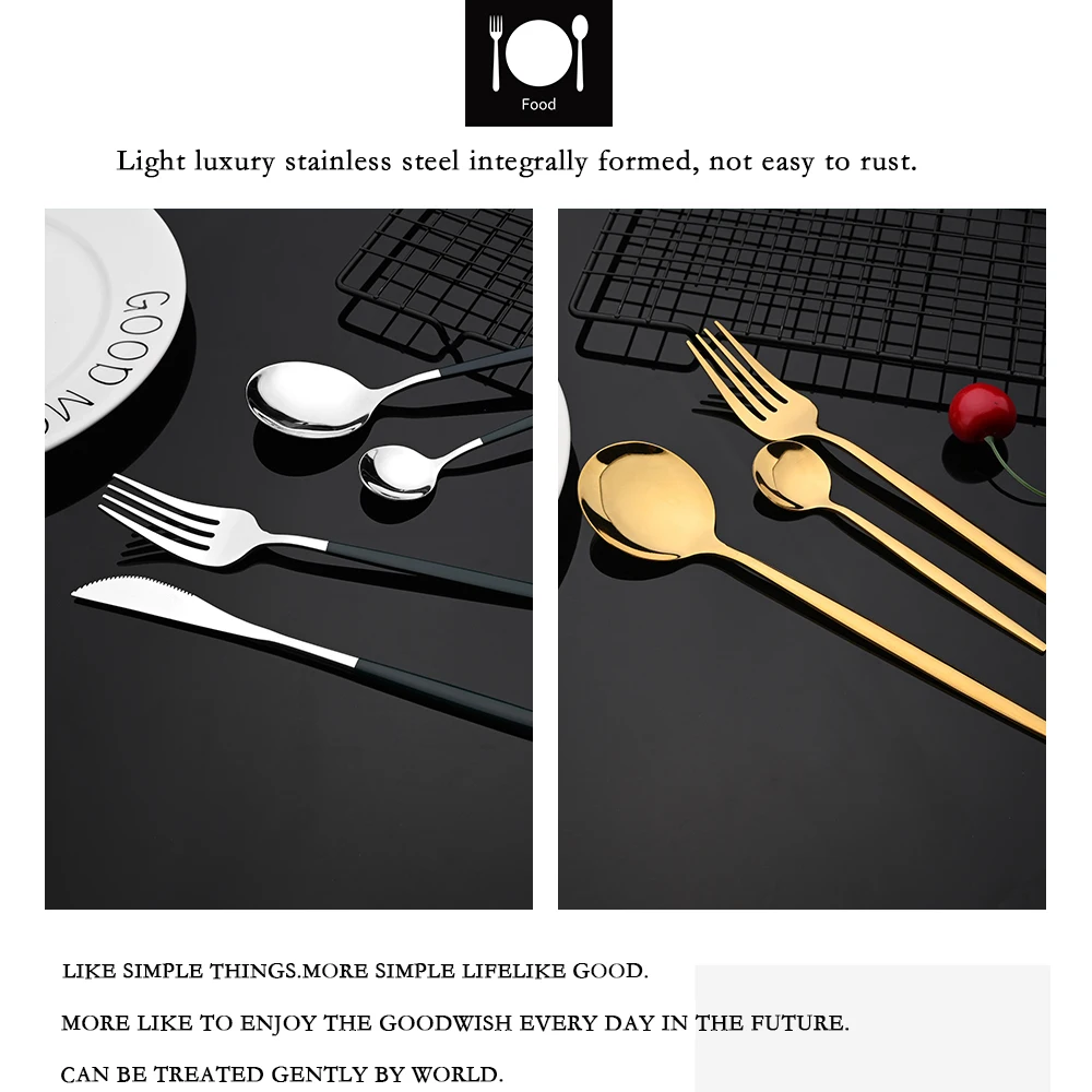 24 шт.набор, набор посуды из нержавеющей стали черного и золотого цвета, нож, вилка, ложка, набор столовых приборов столовые приборы, набор серебряных изделий, Прямая поставка