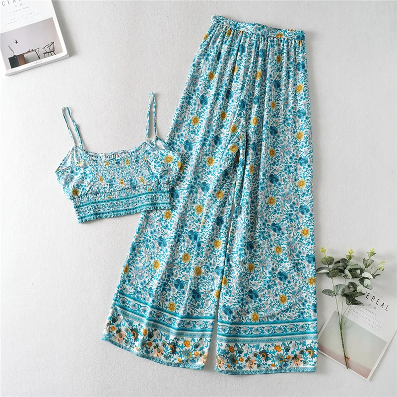 Женский винтажный комплект из двух предметов, Зеленый цветочный топ...