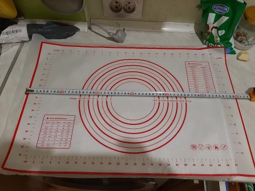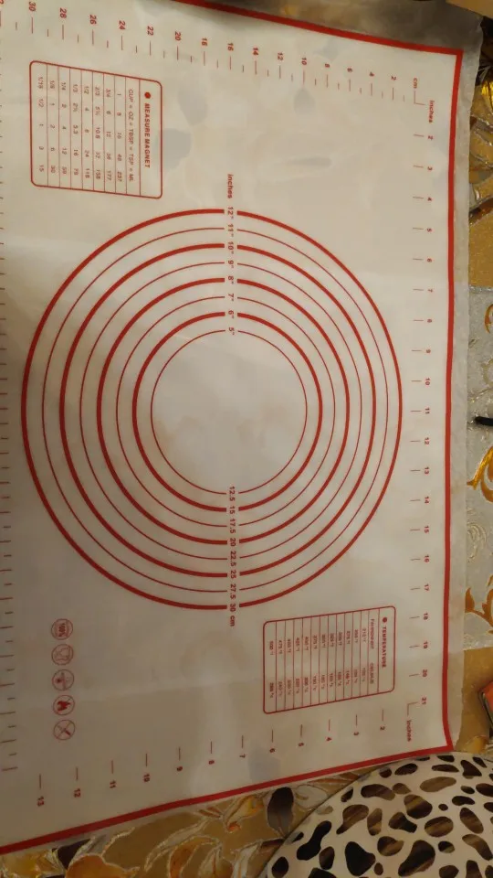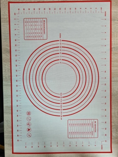 Я попробовал Выпекать с ним, но в противном случае коврик красиво сделан, очень просторный и с практичными мерами. Я очень доволен этим.