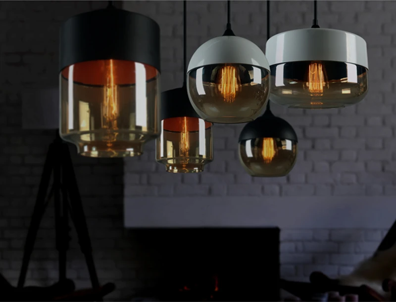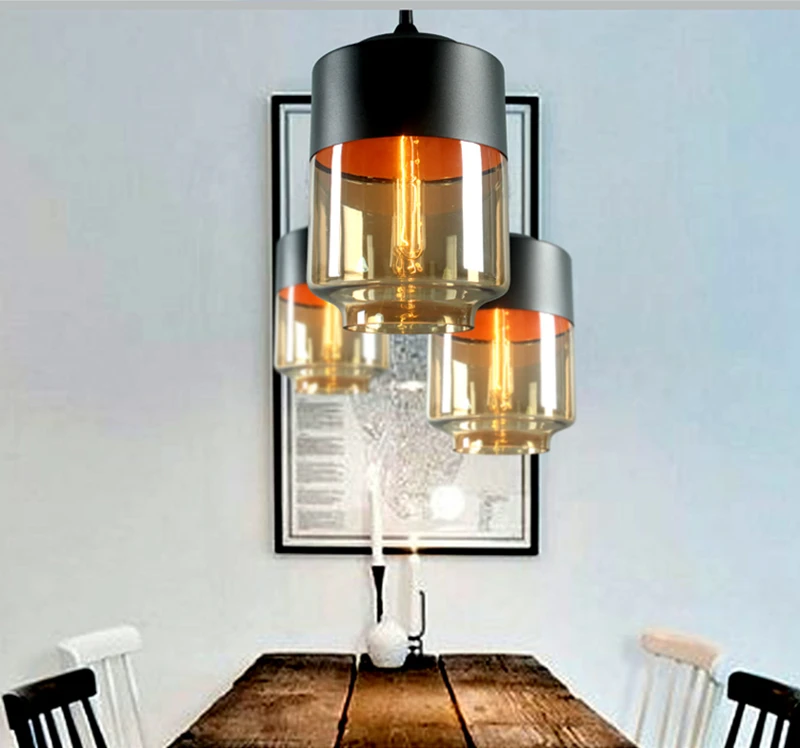Подвесной светильник из прозрачногоянтарного стекла в нордическом промышленном стиле, современный декоративный осветительный прибор для гостиной, спальни, кухни, ресторана, бара