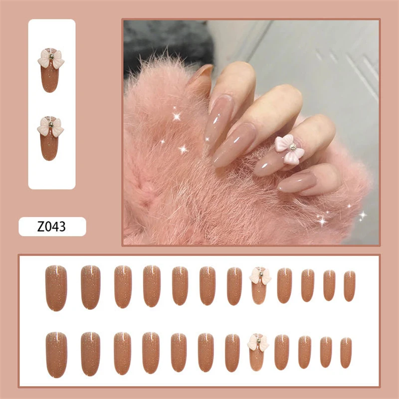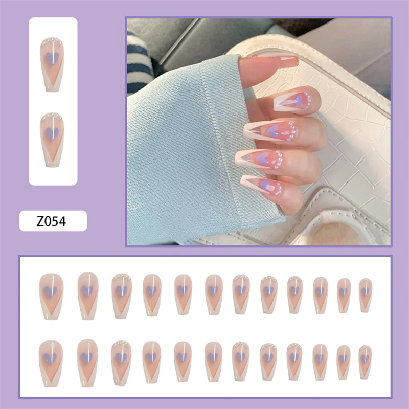 Новинка 2022, 24 шт.компл., милые дизайнерские накладные ногти с ри...
