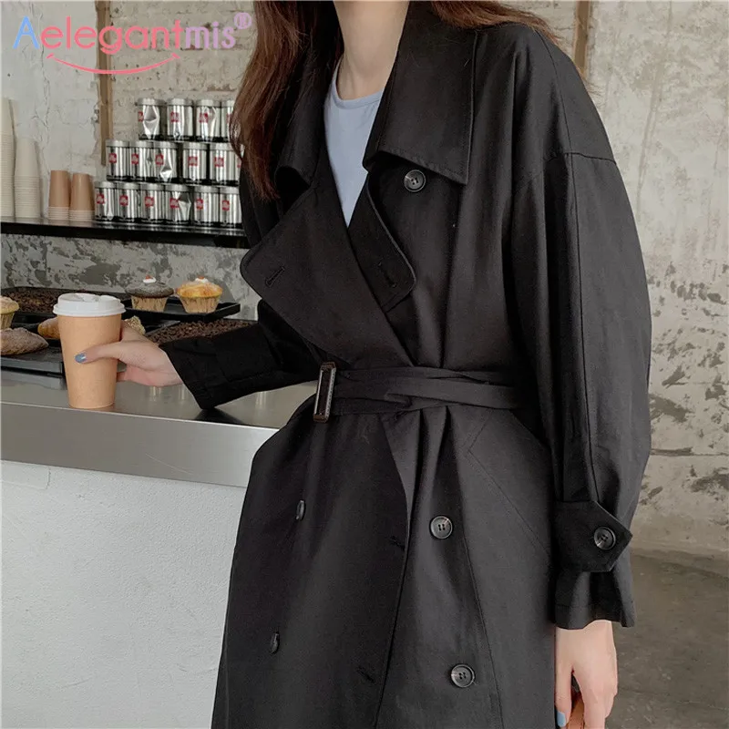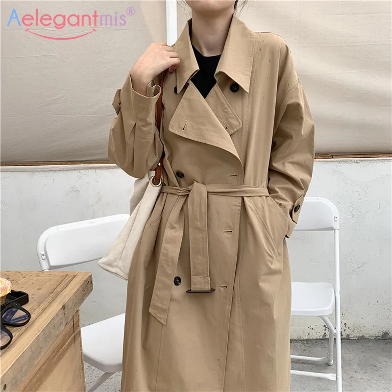 Женская ветровка с длинным пальто для женщин поясом Aelegantmis, свободная уличная одежда на осень и зиму, 2020