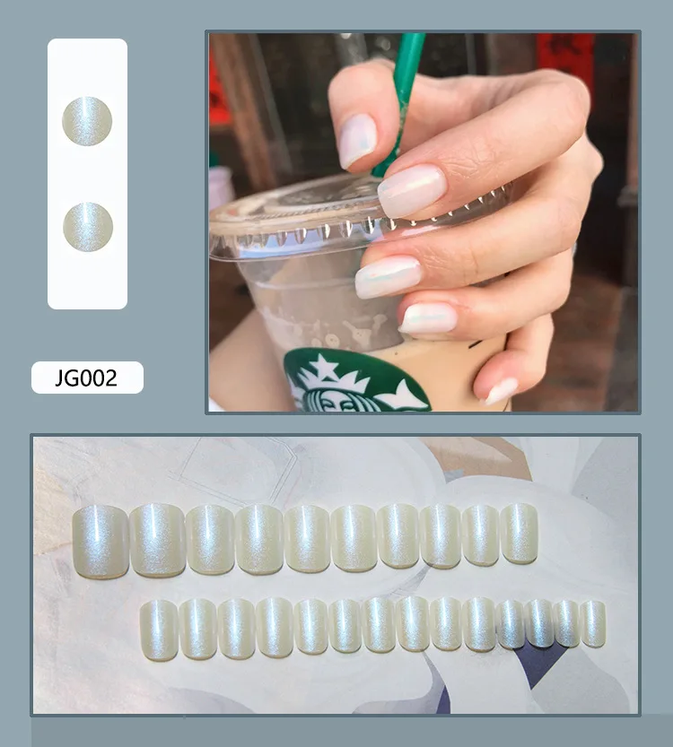 Свадебные жемчужные белые французские накладные ногти для маникюра, накладные ногти для ежедневного использования в офисе, с клеем, стикер