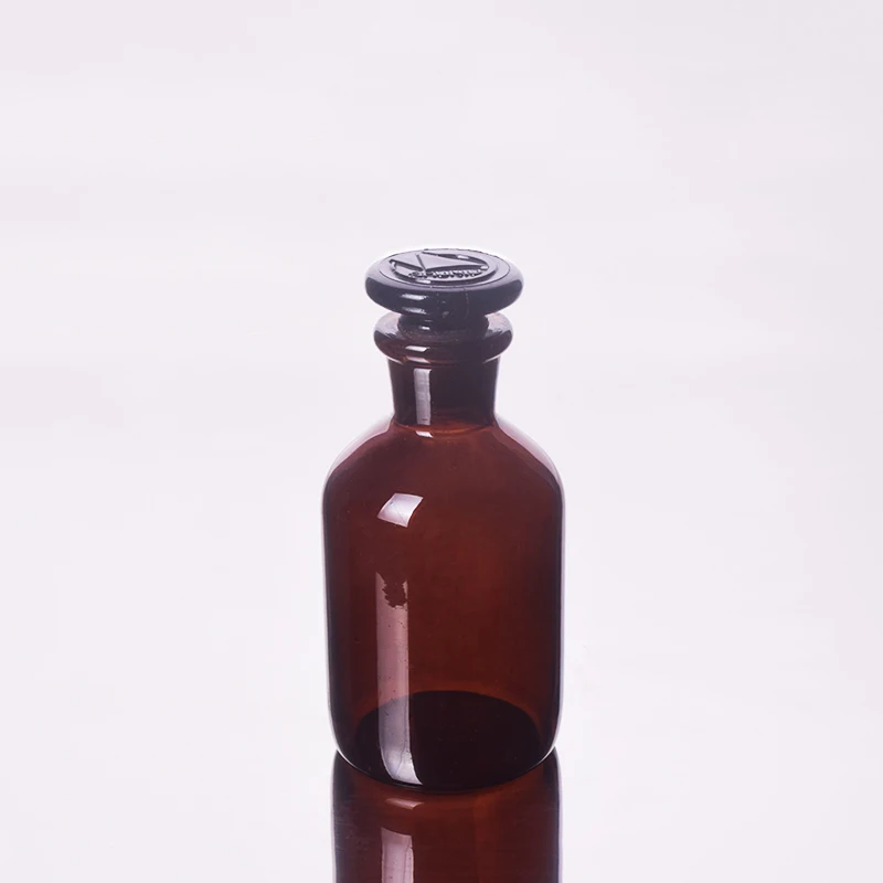 Коричневая бутылка реагента, узкая горловина со стандартной заземляющей стеклянной пробкой, прозрачная, Боро. 3,3 стекло, емкость 125 мл, флаконы для образцов