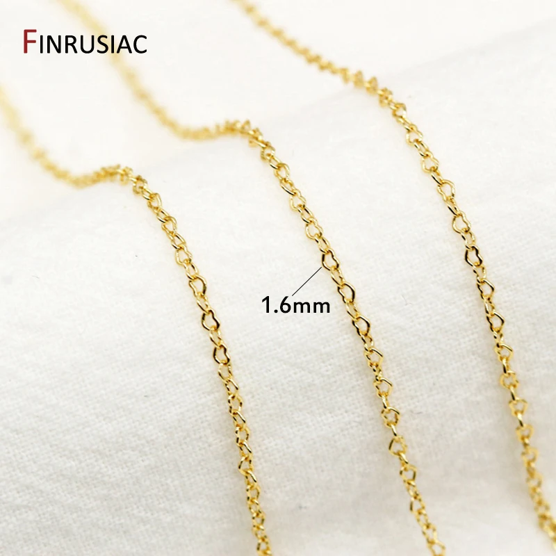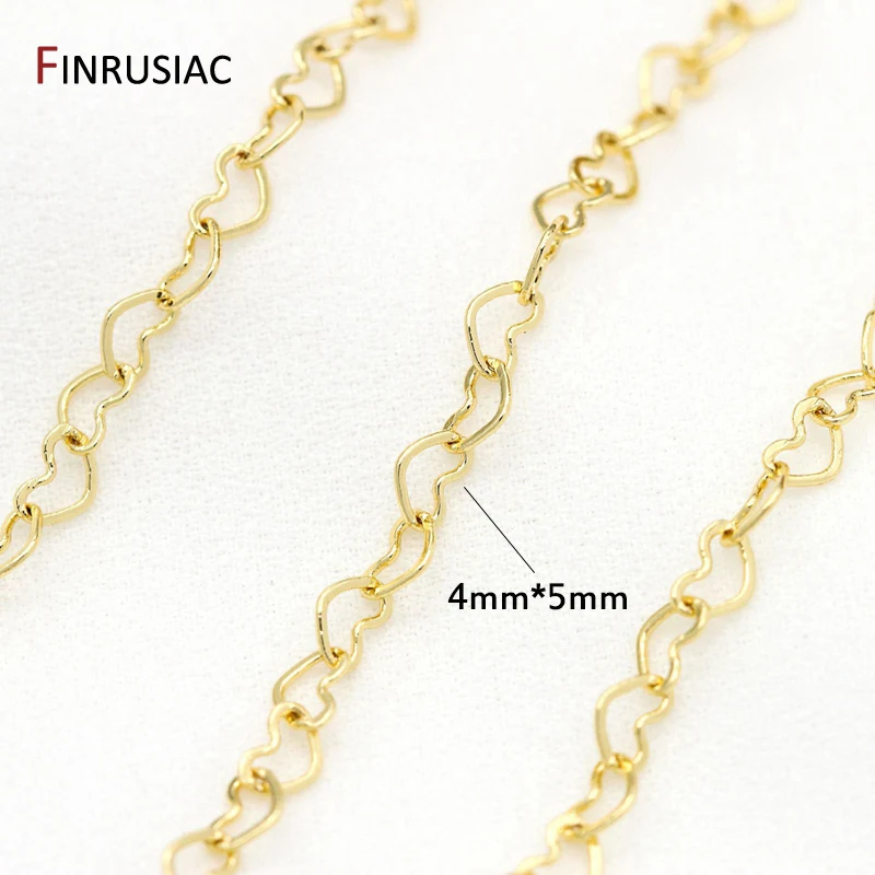 Цепочки в форме сердца для изготовления ювелирных изделий, латунная цепочка с покрытием из настоящего золота 14 к сделай сам для ожерелий, браслетов, серег, аксессуаров, 2 размера