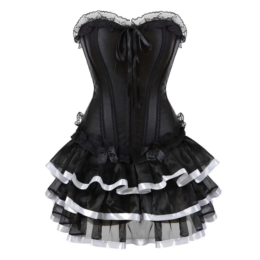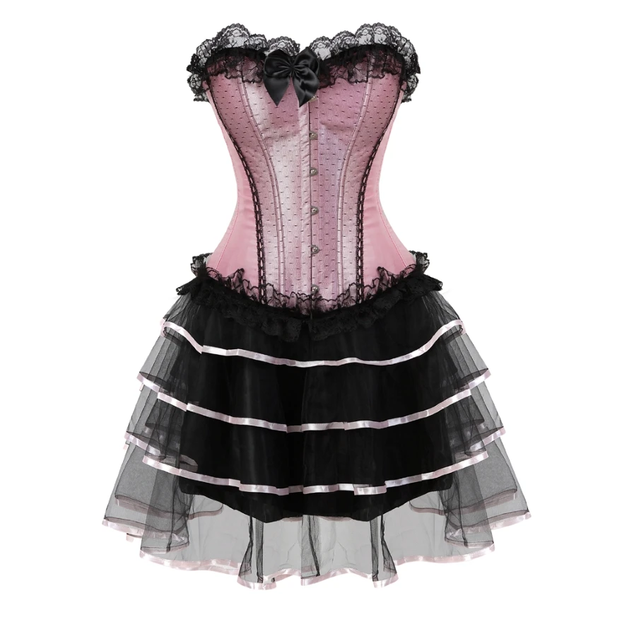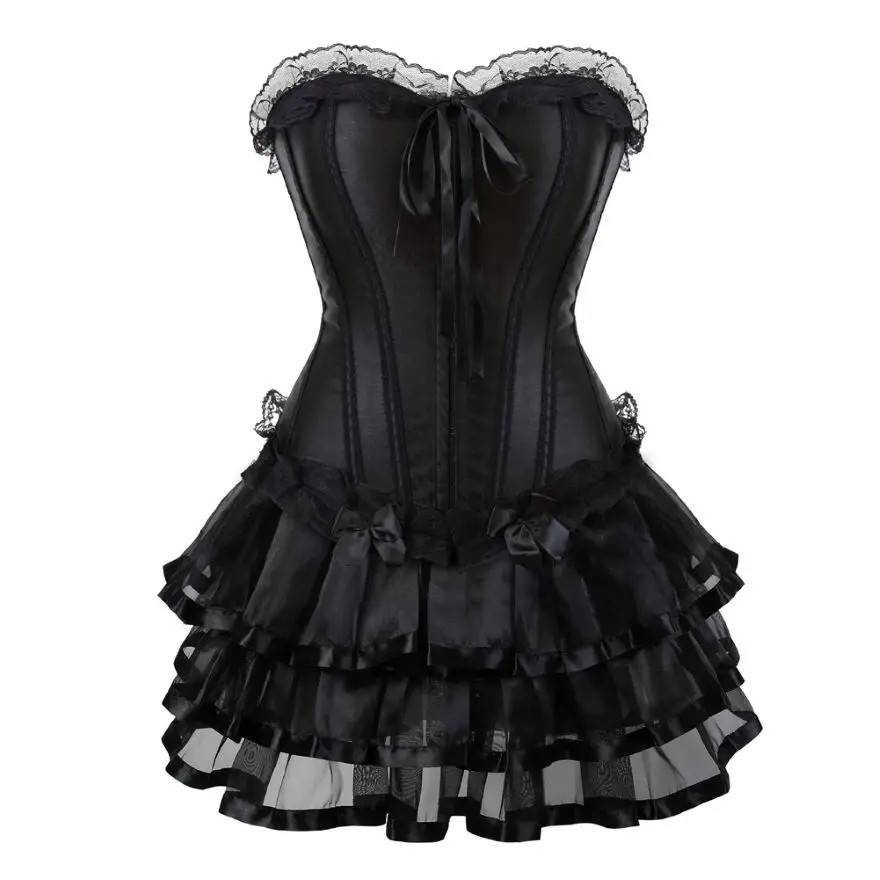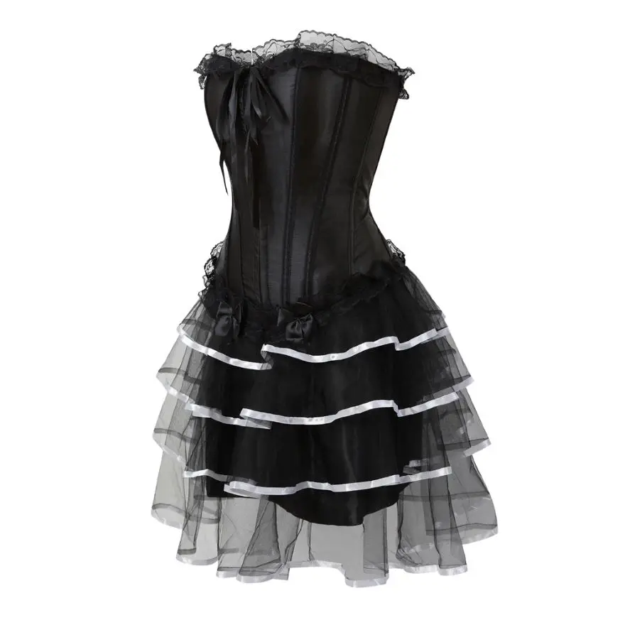 Женское платье-корсет в викторианском стиле, сексуальный кружевной корсет, бюстье-Бурлеск с мини-плиссированной юбкой, комплект размера плюс S-6XL