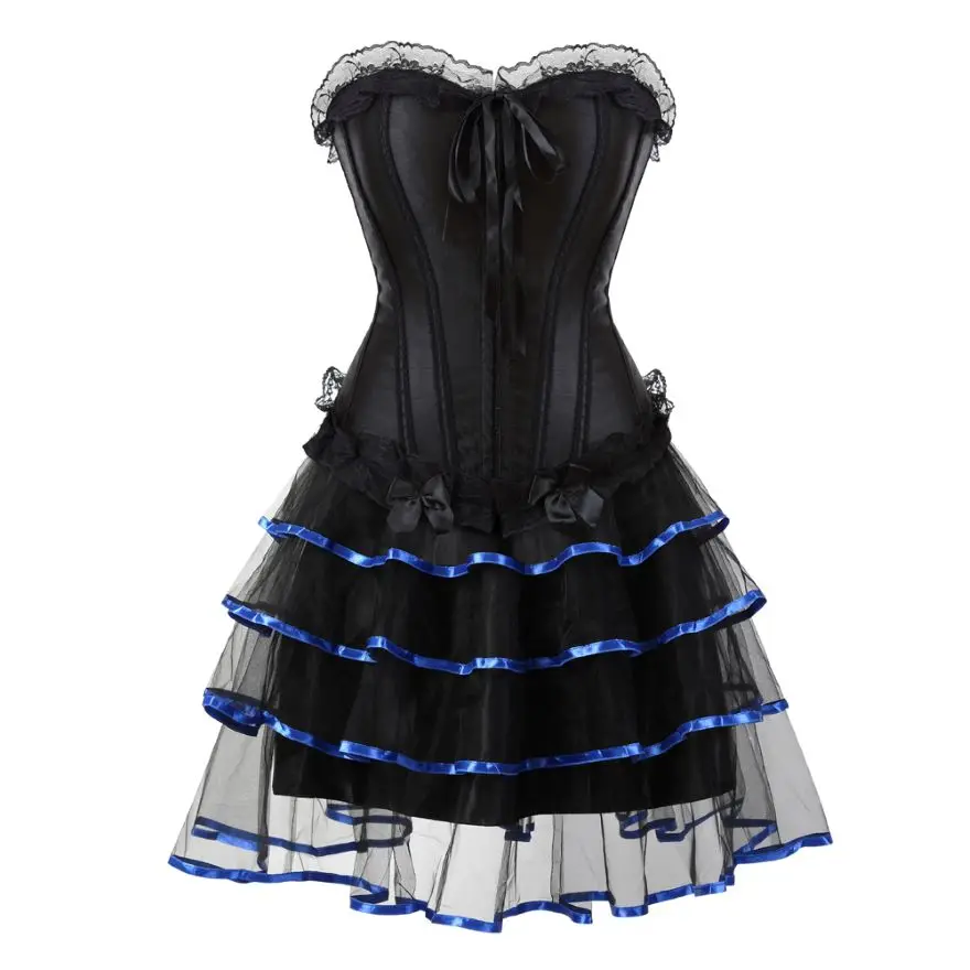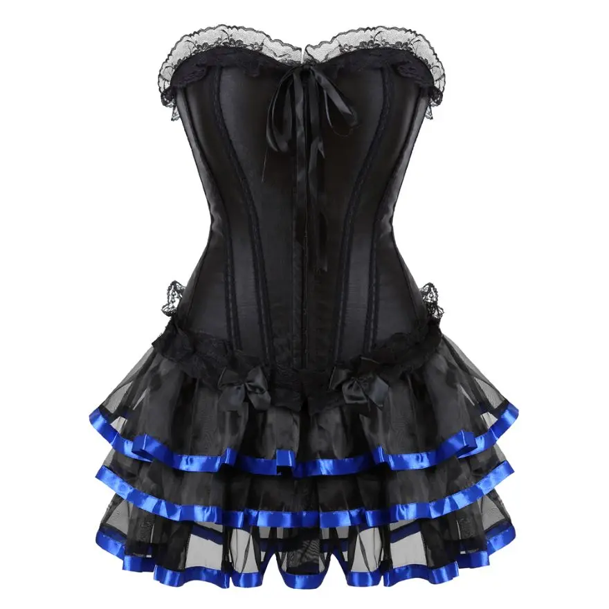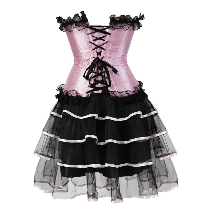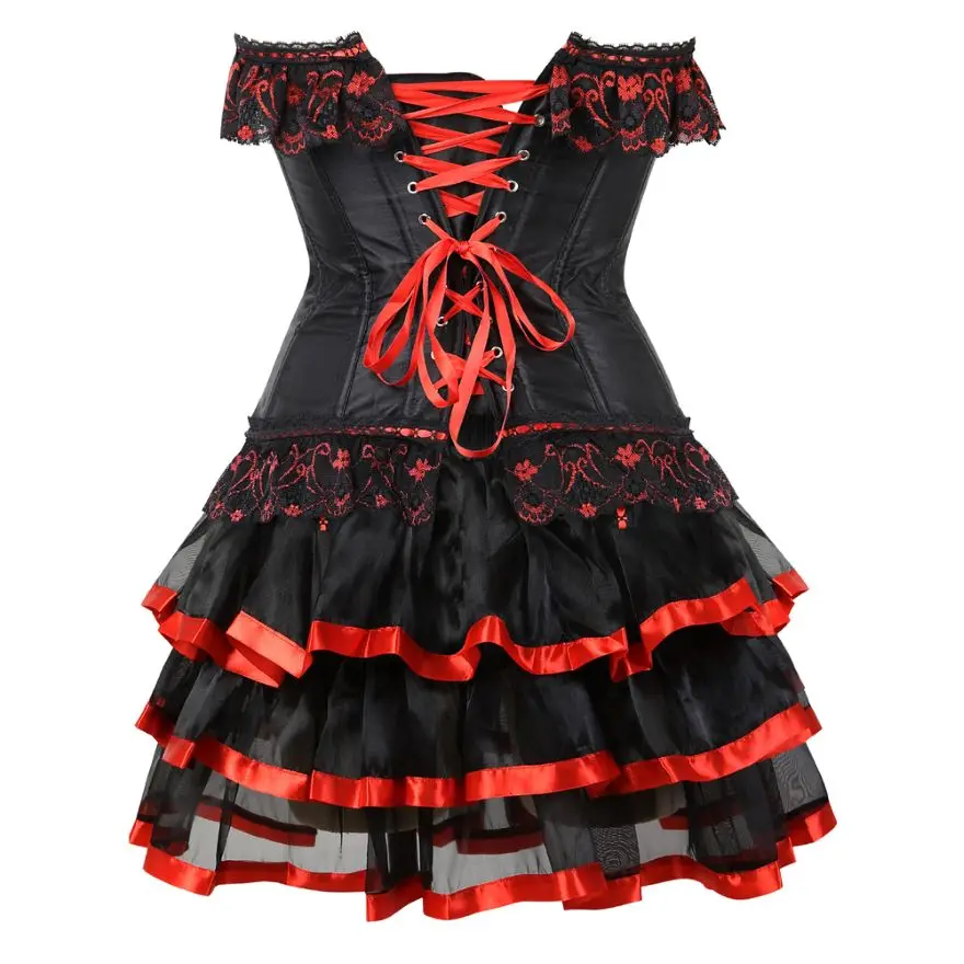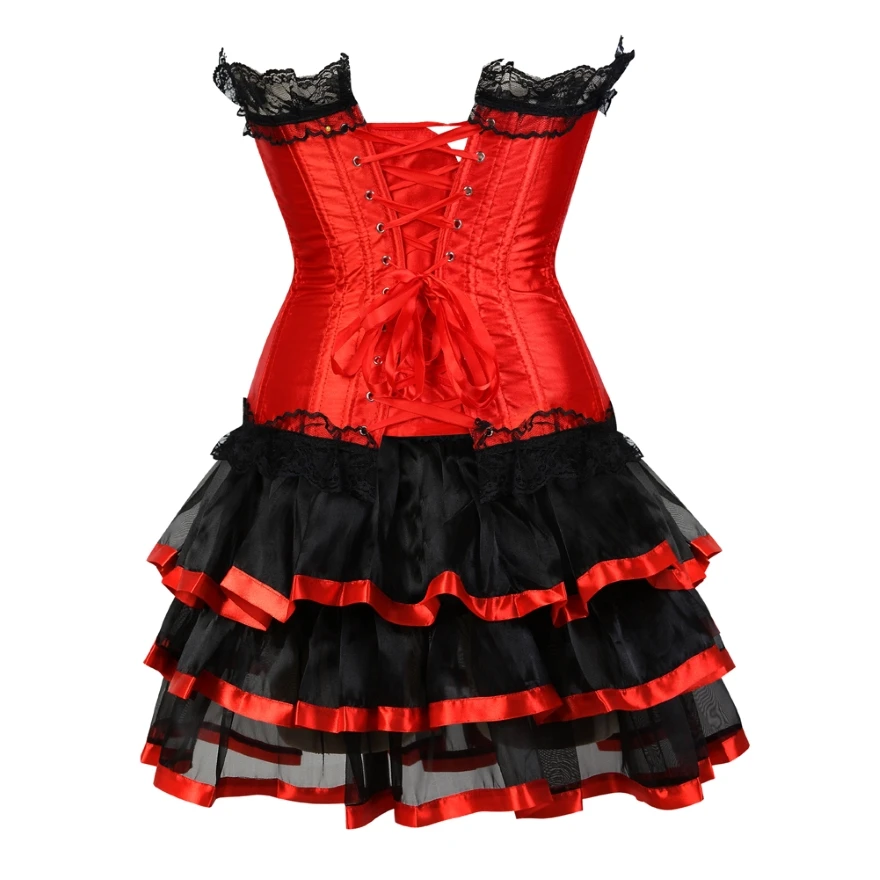 Женское платье-корсет в викторианском стиле, сексуальный кружевной корсет, бюстье-Бурлеск с мини-плиссированной юбкой, комплект размера плюс S-6XL
