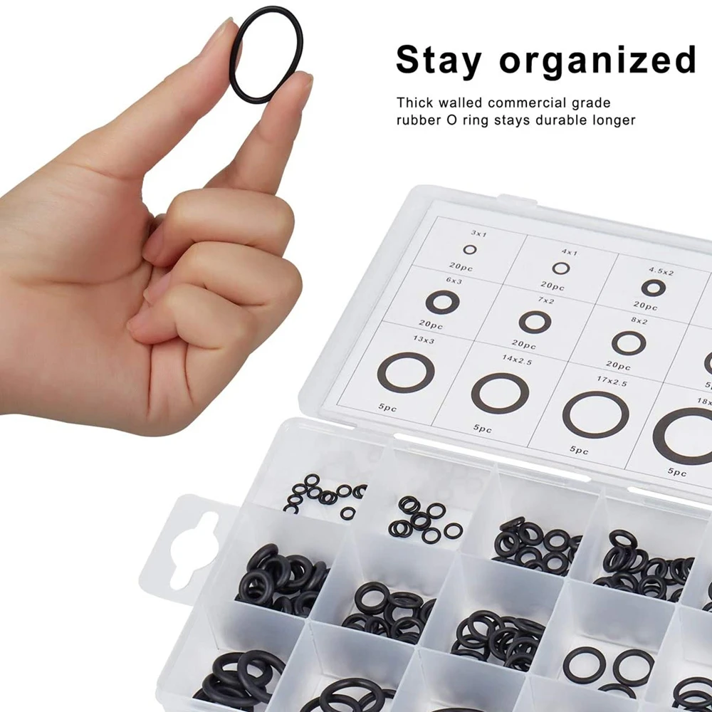 Идеально подходит для предотвращения протечек во время работы с сантехникой, гидравликой, воздухом и газовыми соединениями.Резиновая конструкция противостоит масляным, газовым, водным и спиртовым растворителям.Нитриловая Резина (NBR), термостойкая и износостойкаяОтличное сопротивление маслу и УФ: нитрильная бутадиеновая Резина коммерческого класса (NBR)18 различных размеров.Используется для личных и профессиональных мастерских, гаражей и сантехнических услуг.Размеры от 3 мм x 1 мм (корпус) до 22 мм x 2 мм (корпус).В комплект входит пластиковый чехол для хранения. Размеры:20 шт.-3x1 мм 20 шт.-4x1 мм20 шт.-4,5x2 мм 20 шт.-5x2 мм20 шт.-6x2 мм 20 шт.-6x2,5 мм20 шт.-6x3 мм 20 шт.-7x2 мм20 шт.-8x2 мм 5 шт.-9x2 мм5 шт.-10x2 мм 5 шт.-12x3 мм5 шт.-13x3 мм, 5 шт./набор, предметы-14x2,5 мм5 шт.-17x2,5 мм, 5 шт./набор, предметы-18x4 мм5 шт.-20x2 мм 5 шт.-22x2 ммMEAS:43X23X19.5 см