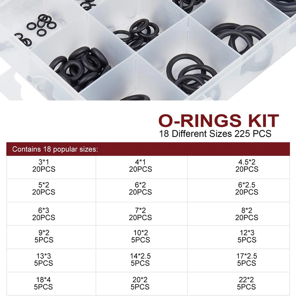 225 шт черное резиновое уплотнительное кольцо уплотнение прокладок уплотнительное кольцо наборы в 18 размерах с пластиковой коробкой