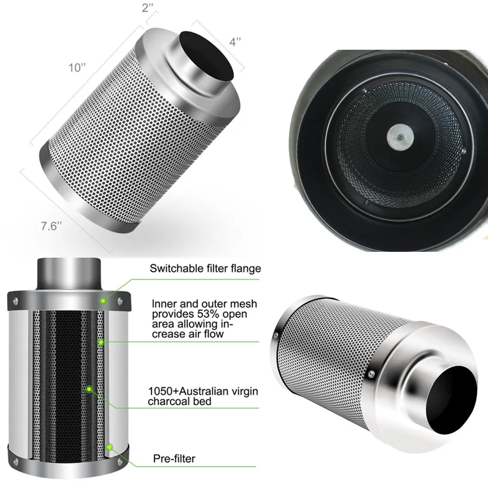MTPAKE 468 дюймовый вентилятор с низким уровнем шума с высокоскоростным ветром, 8 с угольным фильтром и 6 футов трубопровода для вентиляции палатки для выращивания
