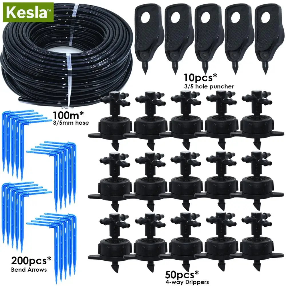 KESLA 5 м-100 м 4/8LPH компенсация давления излучатель наборы для полива для сельского хозяйства парник капельного орошения системы w/перфоратор