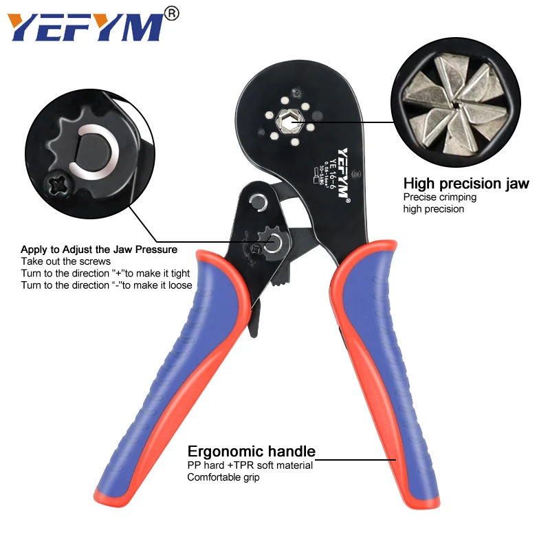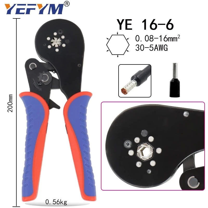Обжимной инструмент для клемм YE 16-6 0,08-16 мм 30-5AWG, мини-плоскогубцы для обжима клемм большого размера, набор электрических зажимов