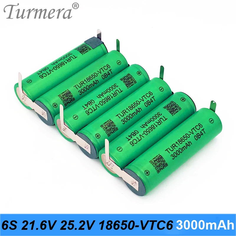 Аккумулятор Turmera, 3S, 12,6 в, 4S, 16,8 в, 5S, 21 в, 6S, 25 в, US18650VTC6, 3000 мА ч, 30 А, для шуруповерта, на заказ