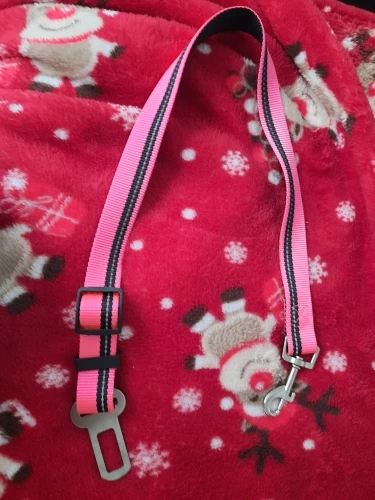Собаку 17кг держит хорошо, удобно в машине, но лучше цеплять на шлейку, хотя на ошейнике тоже работает.