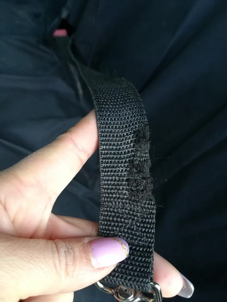 Обратите внимание на качество ткани ремня. Быстро повредит!