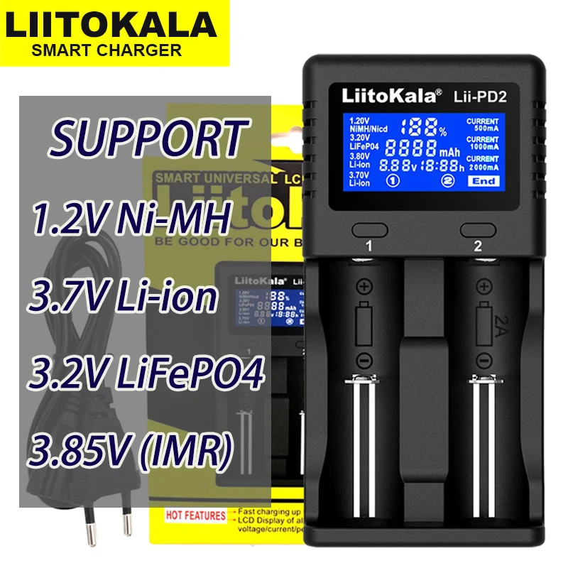 LiitokalaLii-PD2 Lii-PD4 18650 3,7 V литий-ионное зарядное устройство 1,2 V NiMH 3,2 V LiFePO4 21700 18350 18500 AAA 3,85 V cargador 26650 батарея повербанк высокотоковые батареи внешний аккумуляторы акб высокотоковы