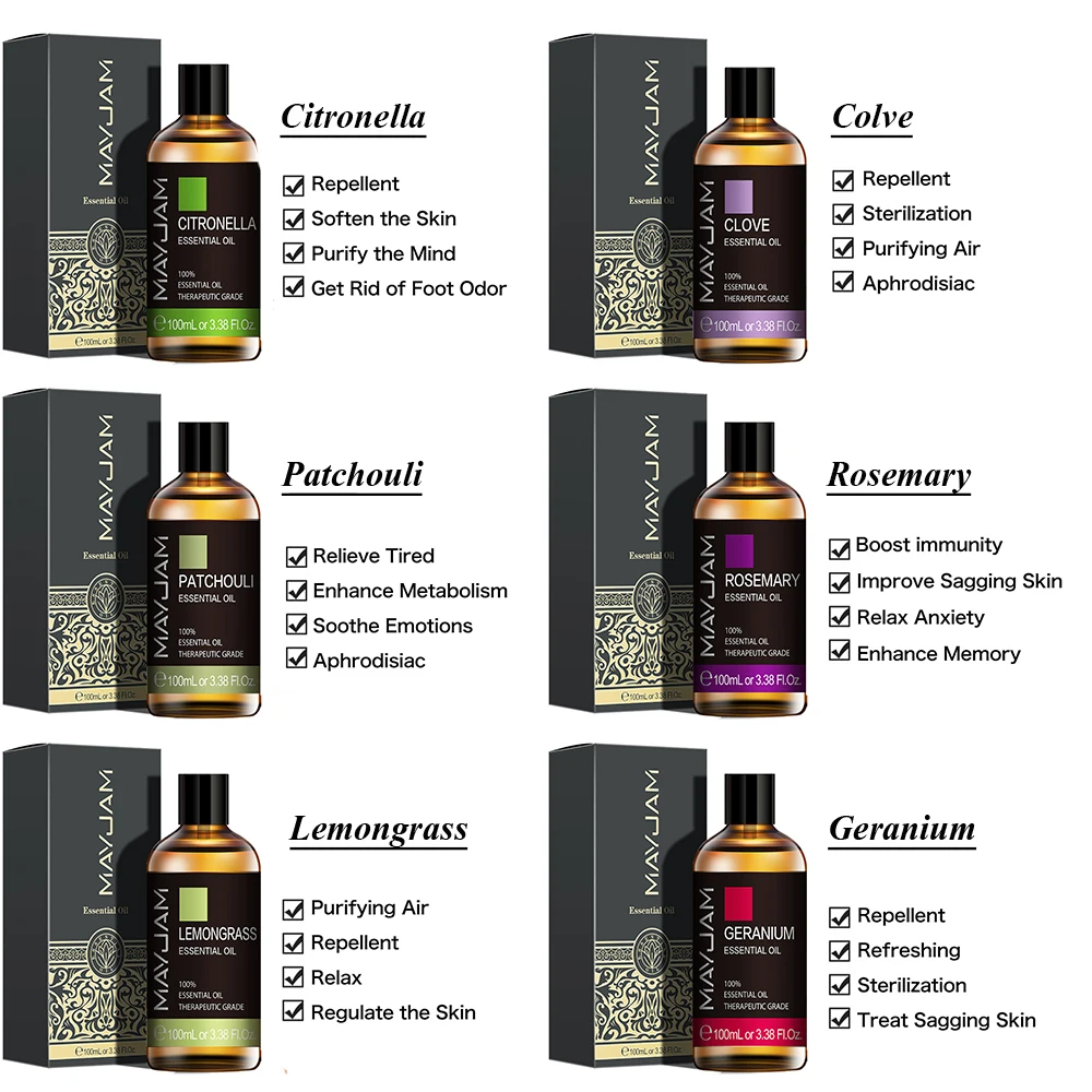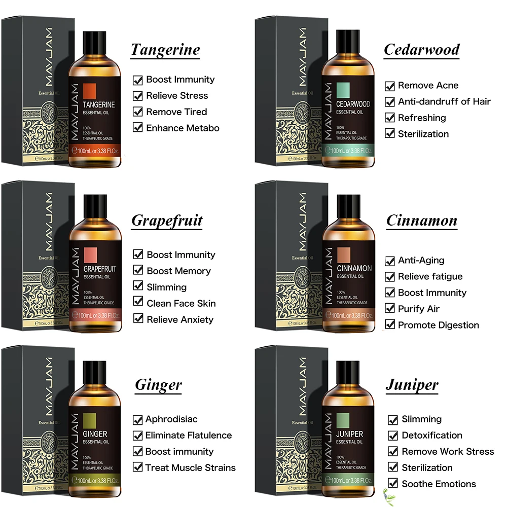 Каждое Эфирное Масло Поставляется с 100 мл янтарно-коричневыми бутылками. Это сохранит масло свежим и защитит светильник от разложения.