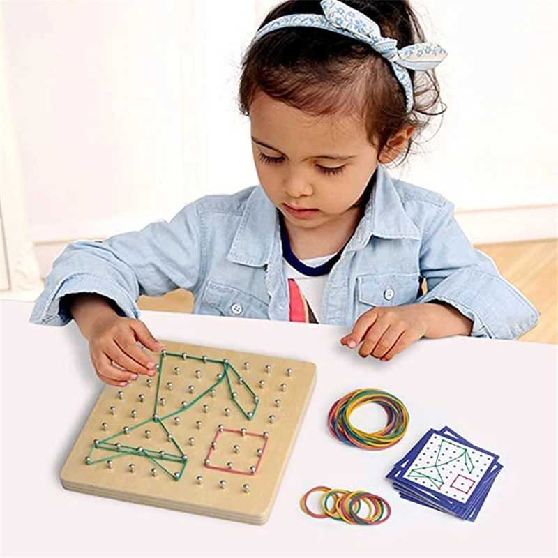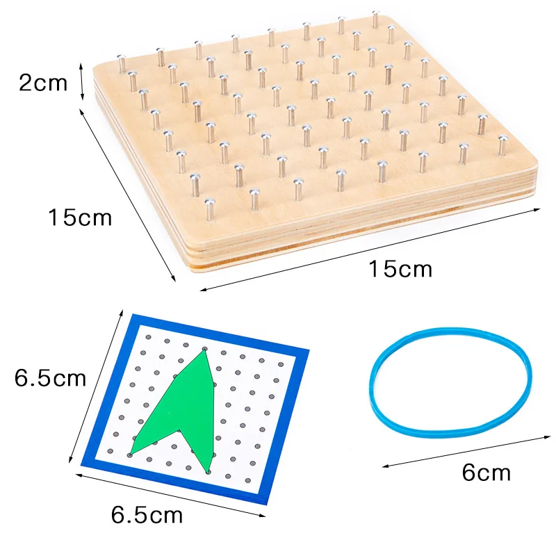 4. Геофборд является математическим манипулятором, используемым для изучения простых форм и более продвинутых представлений, таких как симметрия, углы и фракции. Это хорошие материалы Монтессори для детей для изучения математики, помогает студентам понять геометрические концепции с помощью исследования.