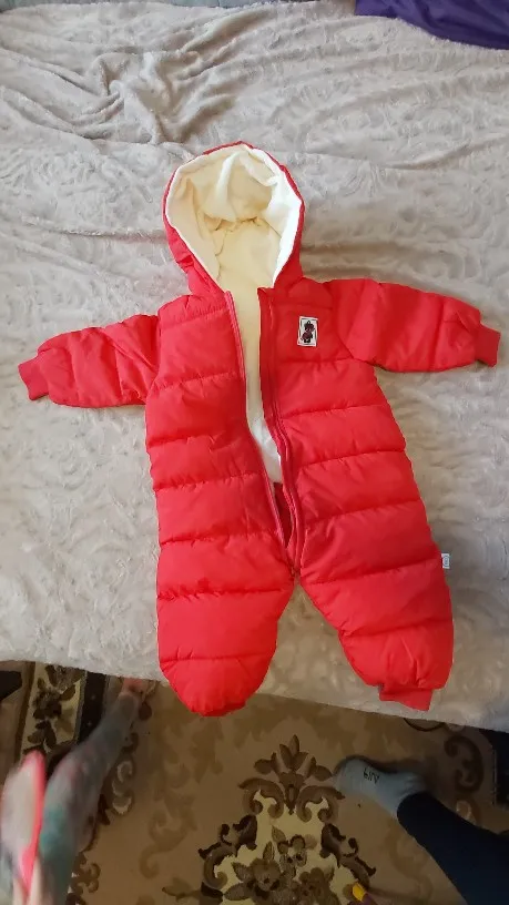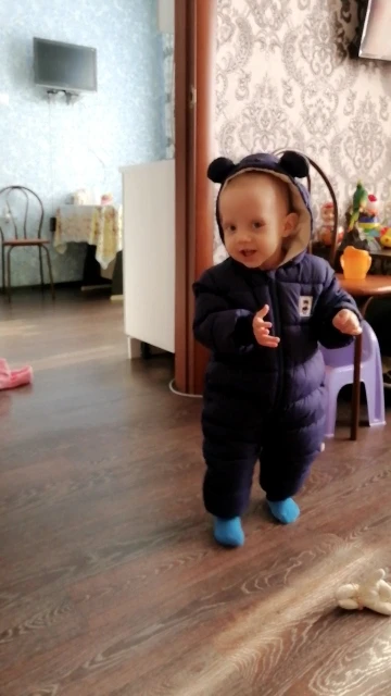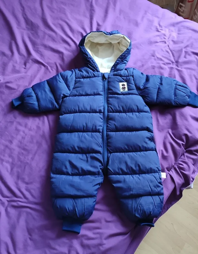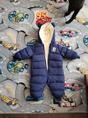 очень понравился комбинезон, но думала, что он более плотный. материал немного шуршит и немного порвано ушко на капюшоне, зашью не проблема. внутри мягкая подкладка, потеплеет и начнём носить. доставка быстрая на пункт выдачи(гораздо быстрее, чем на почте) и не стоять в вечных очередях. спасибо за хорошую вещь по приятной цене
