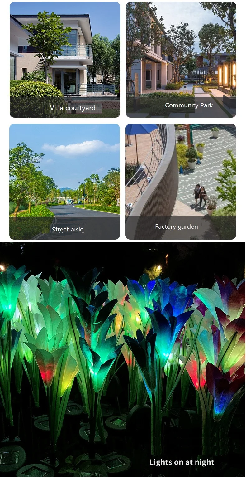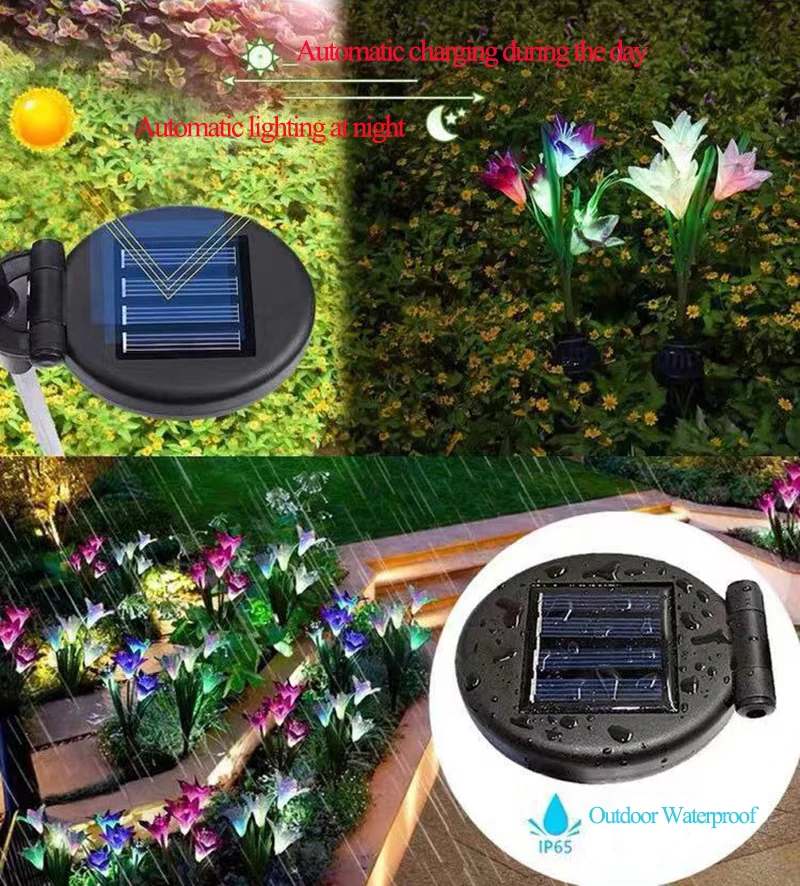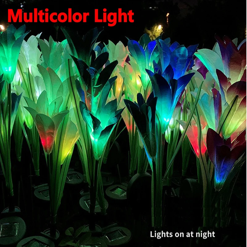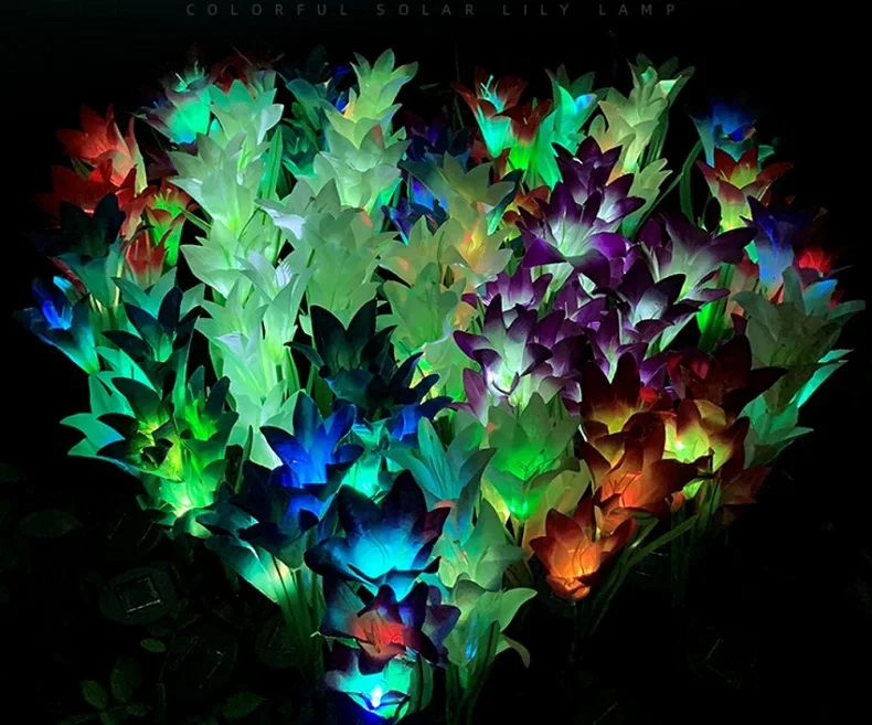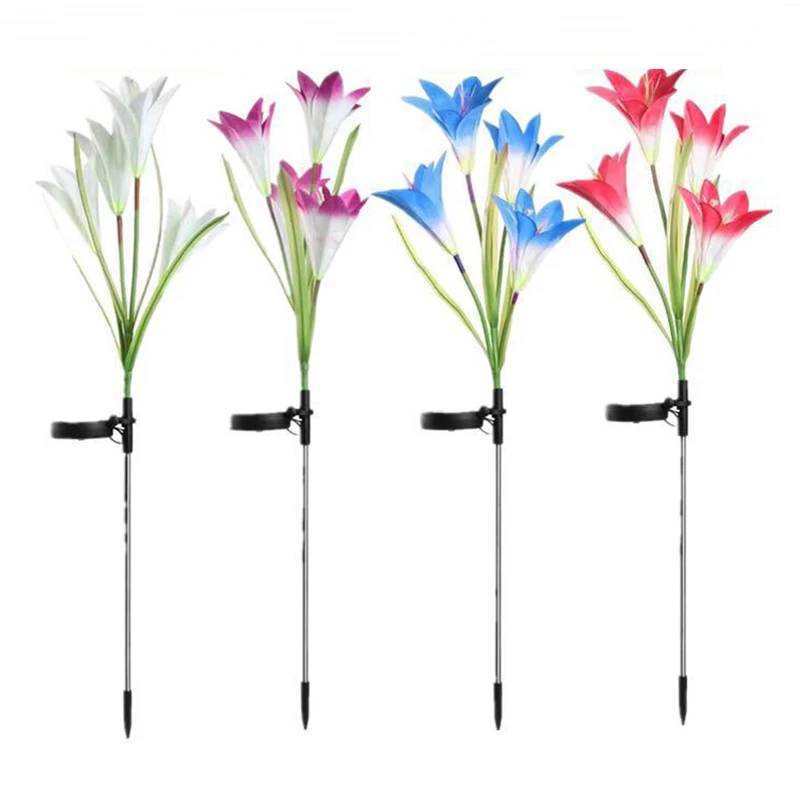 4 головки, светодиодный светильник на солнечной энергии, цветок лилии, RGB, меняющий цвет, уличный садовый светильник, водонепроницаемый ландшафтный светильник для украшения двора