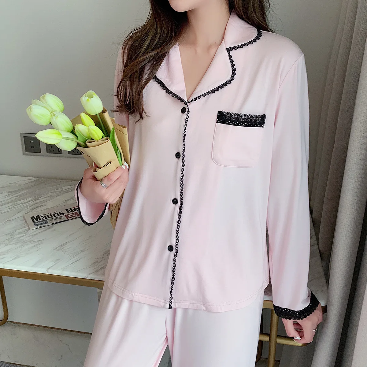 Женские пижамы с длинными рукавами, Летние повседневные черные пижамы из модала в Корейском стиле